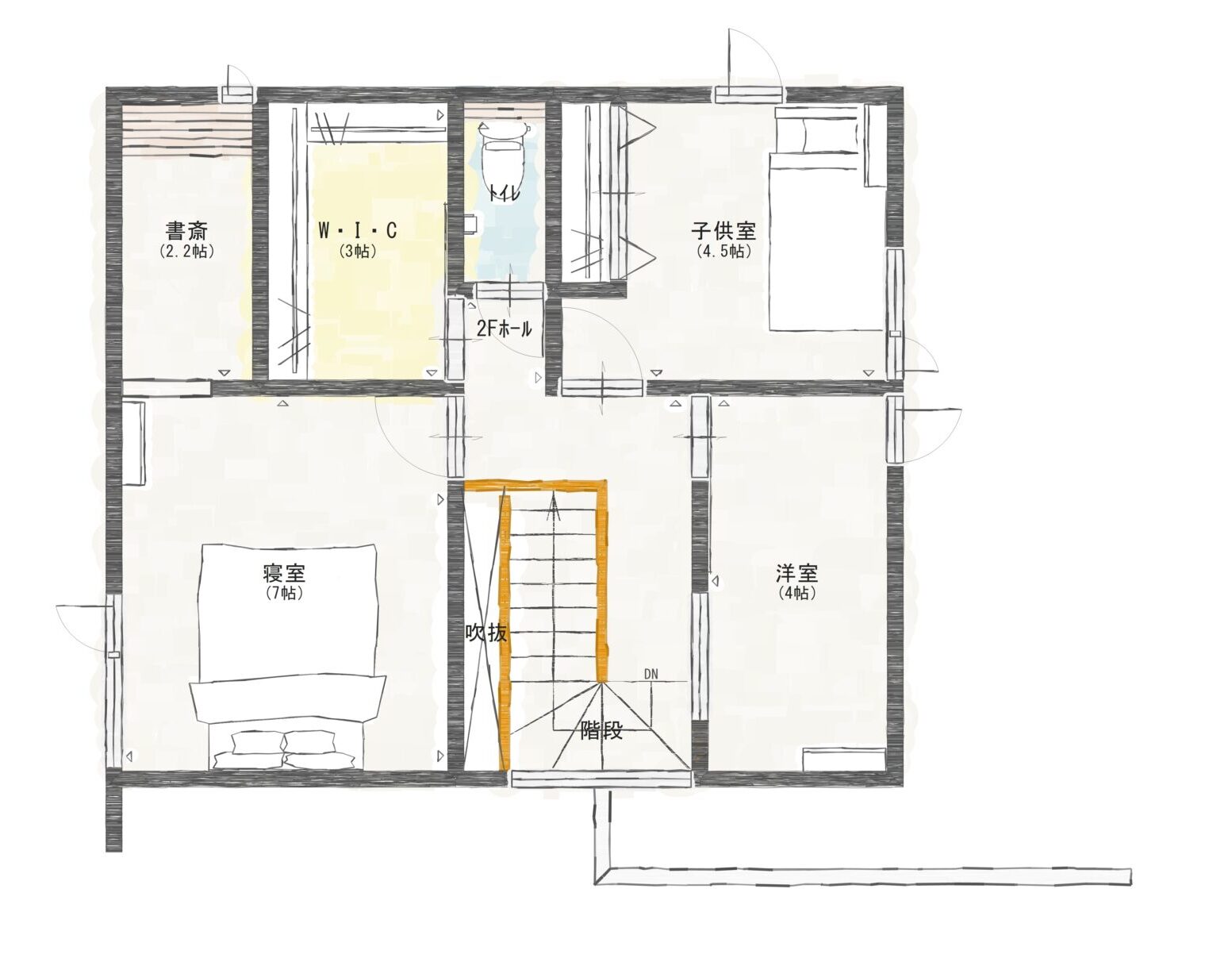 また、2階にはご家族それぞれのプライベート空間を設けているので、リラックスしながら一人の時間を大切に過ごせます。