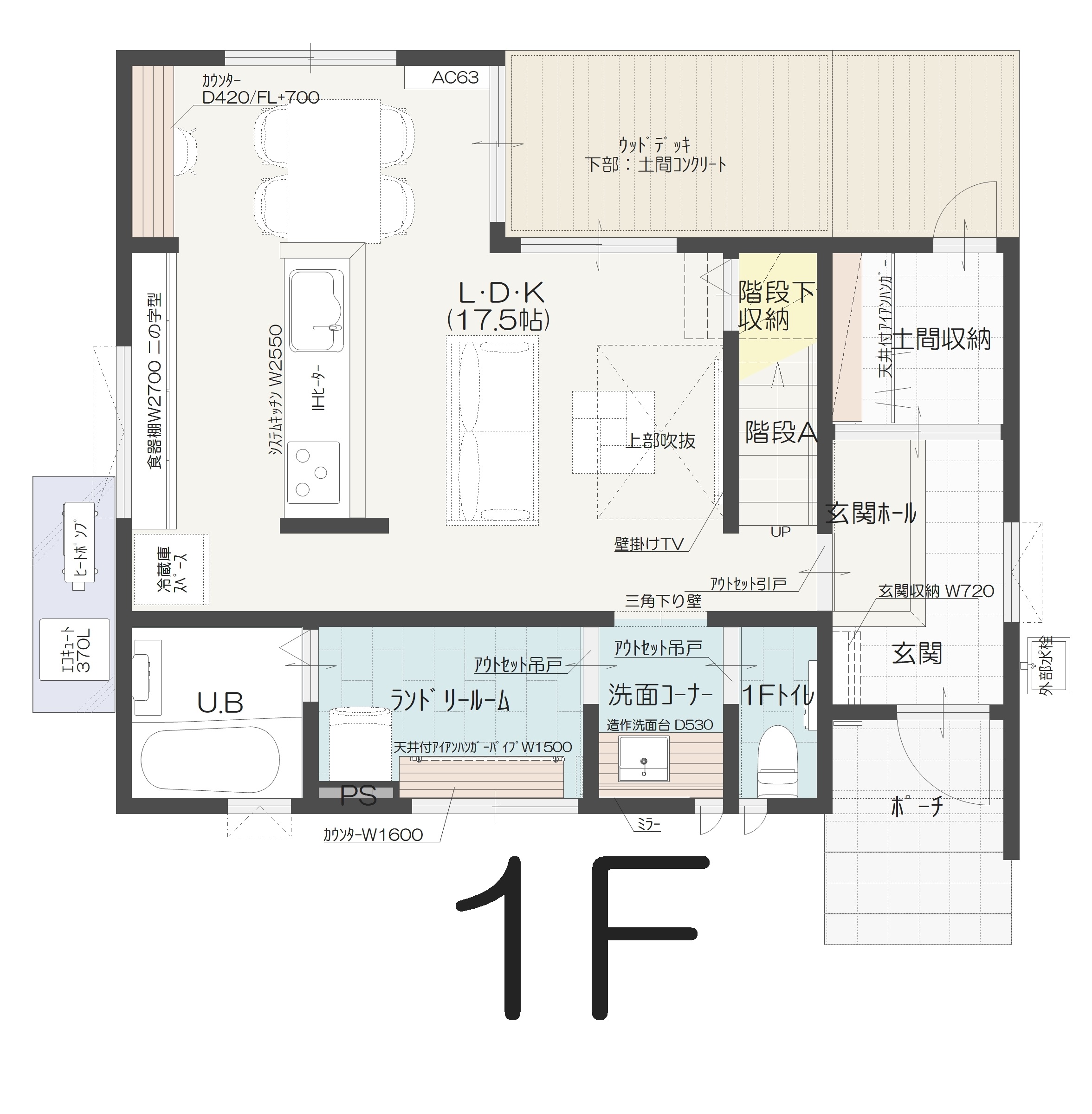 洗濯物を洗ってその場ですぐに干せるランドリールームなど便利でのびのびとすごせるアイデアが満載!