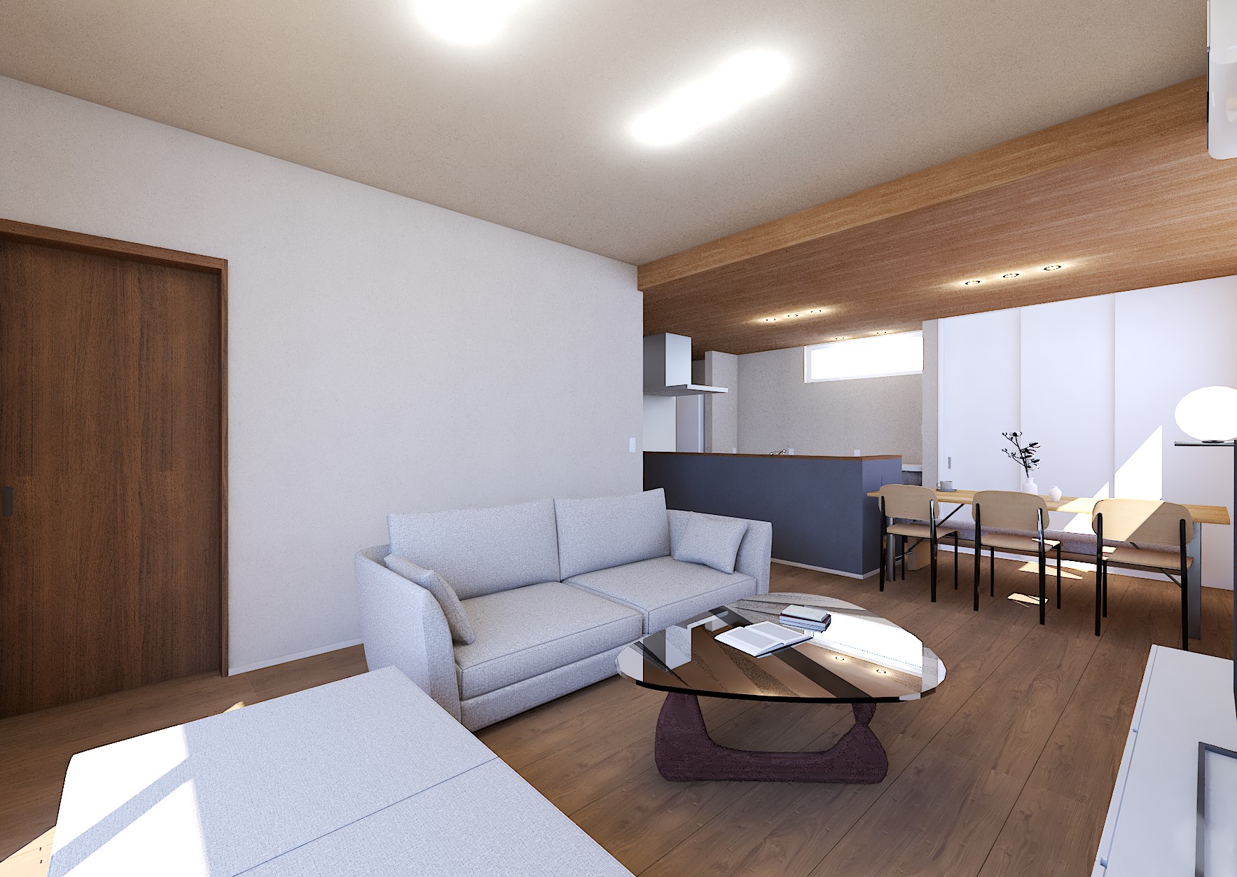 21帖の広さがあるLDK、大きな窓からは光が差し込み、明るく居心地の良い空間が広がります。