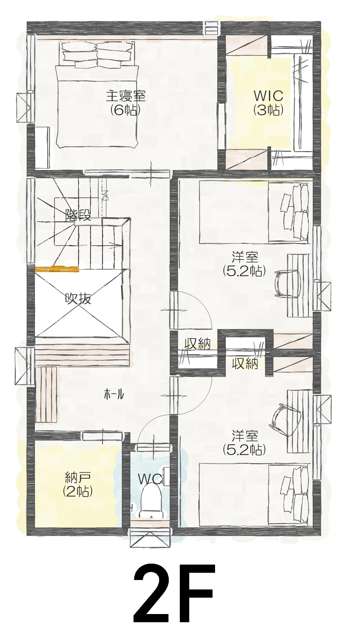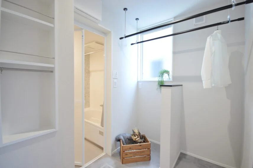 2階ホール南側に物干しスペースを確保して雨の日・洗濯物が多い日も安心して家事が行えるようにプランしました◎