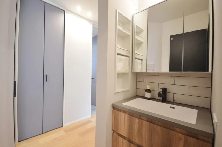 ✓忙しい朝の身支度も楽しいひと時へと変えてくれるようなオシャレな造作洗面台