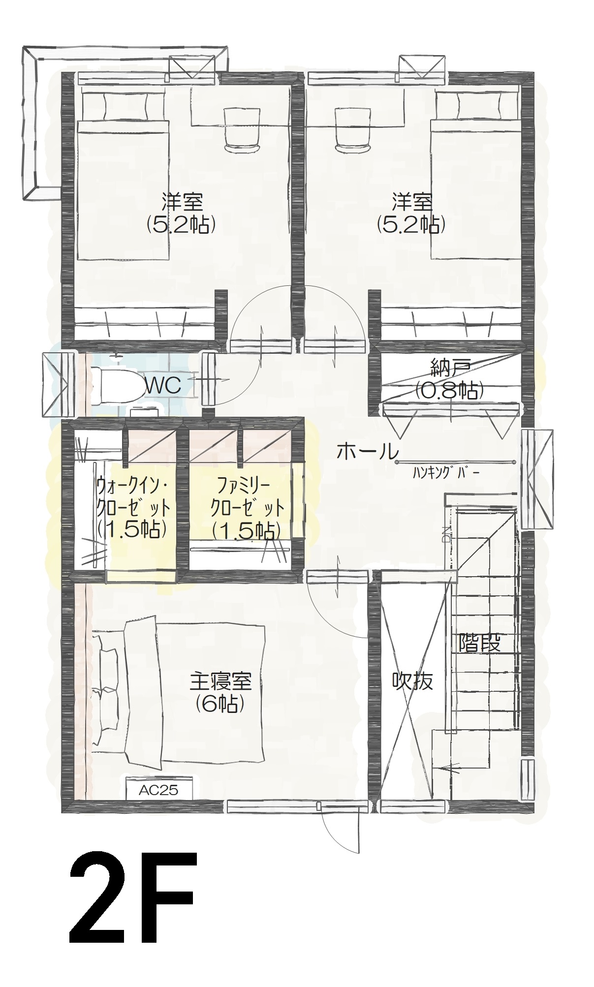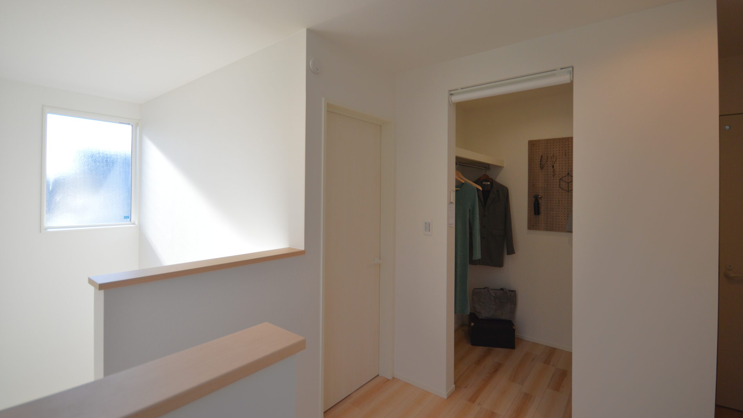 2階には家族全員で使える普段使いの服を収納できるファミリークローク、お布団等の収納として納戸を設置しました