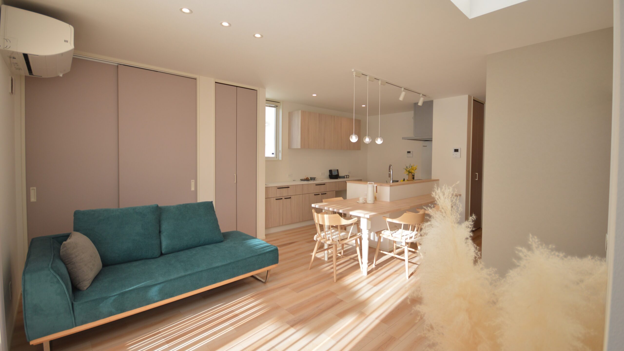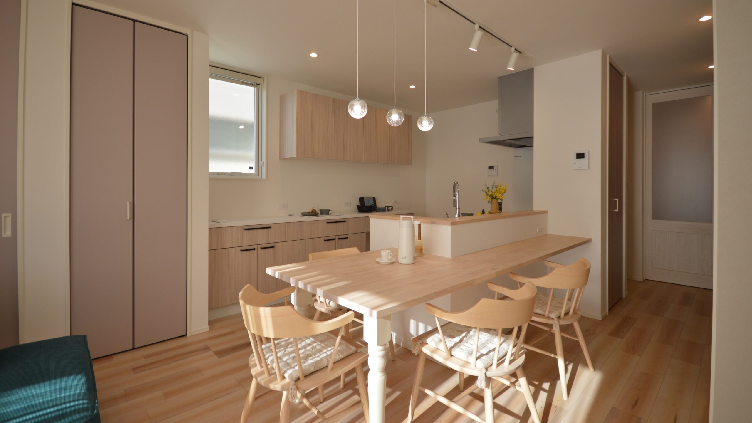 ダイニングテーブル用のカウンターを造作にすることで、お料理を運んだり、片付ける時も楽チン♪