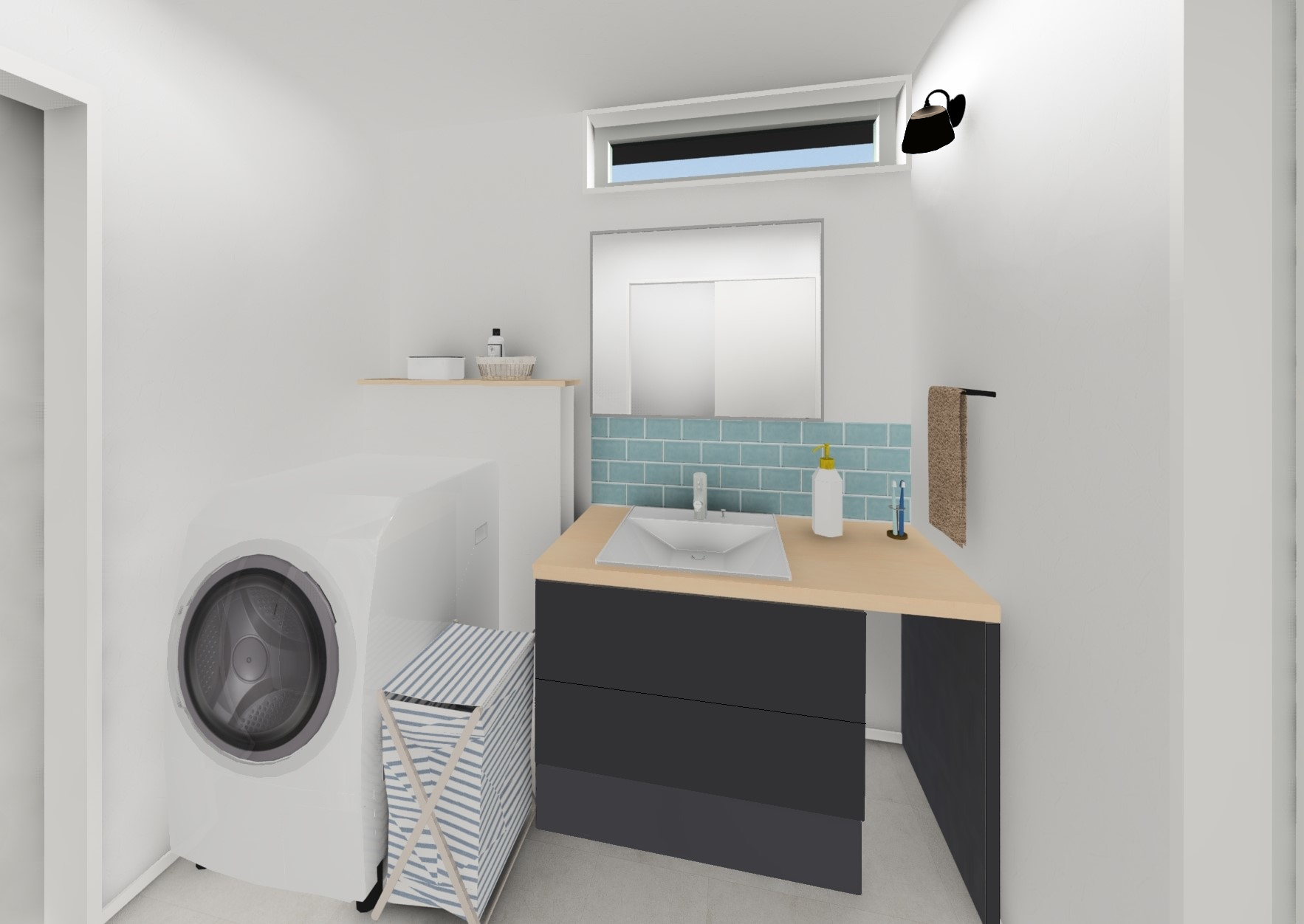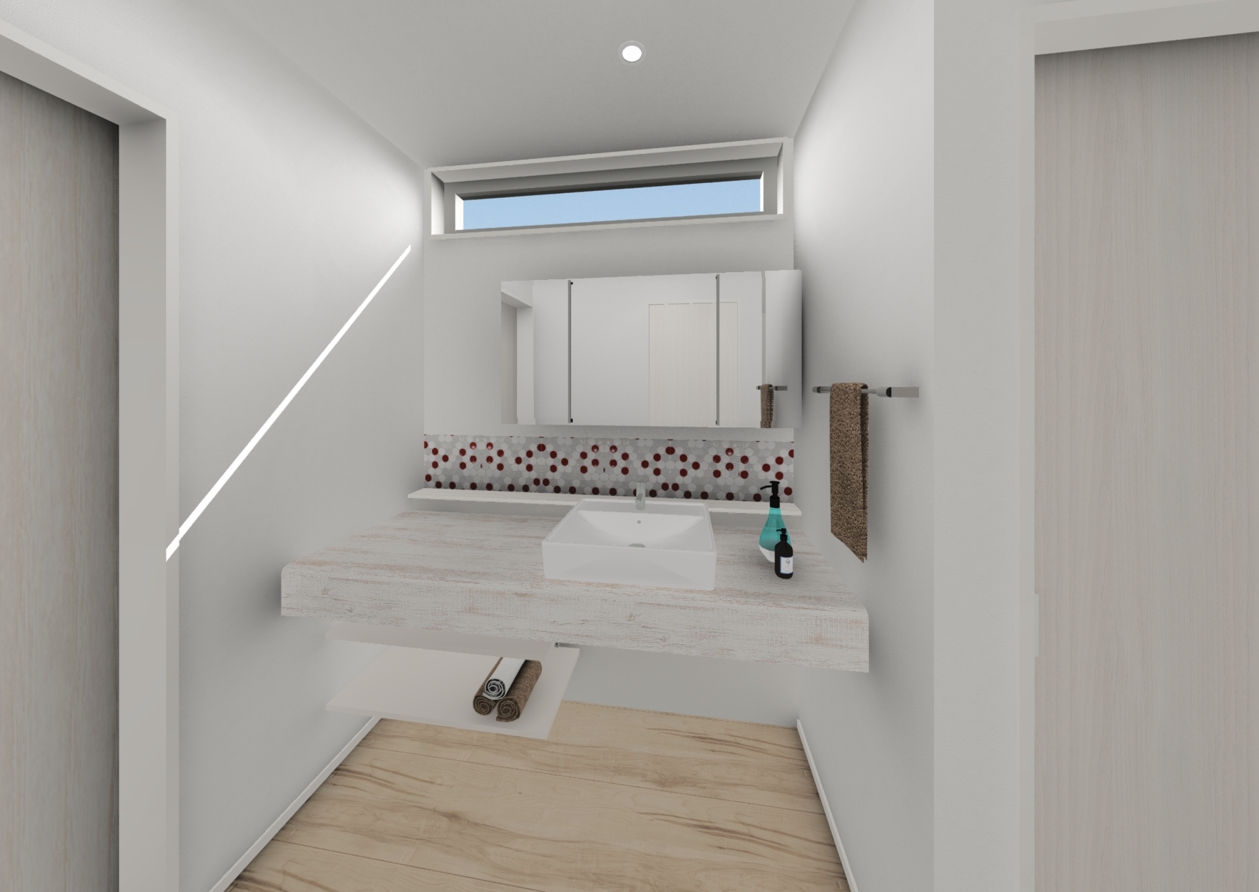 オンリーワンデザインの造作洗面台。毎日の身支度が楽しくなる特別な空間。