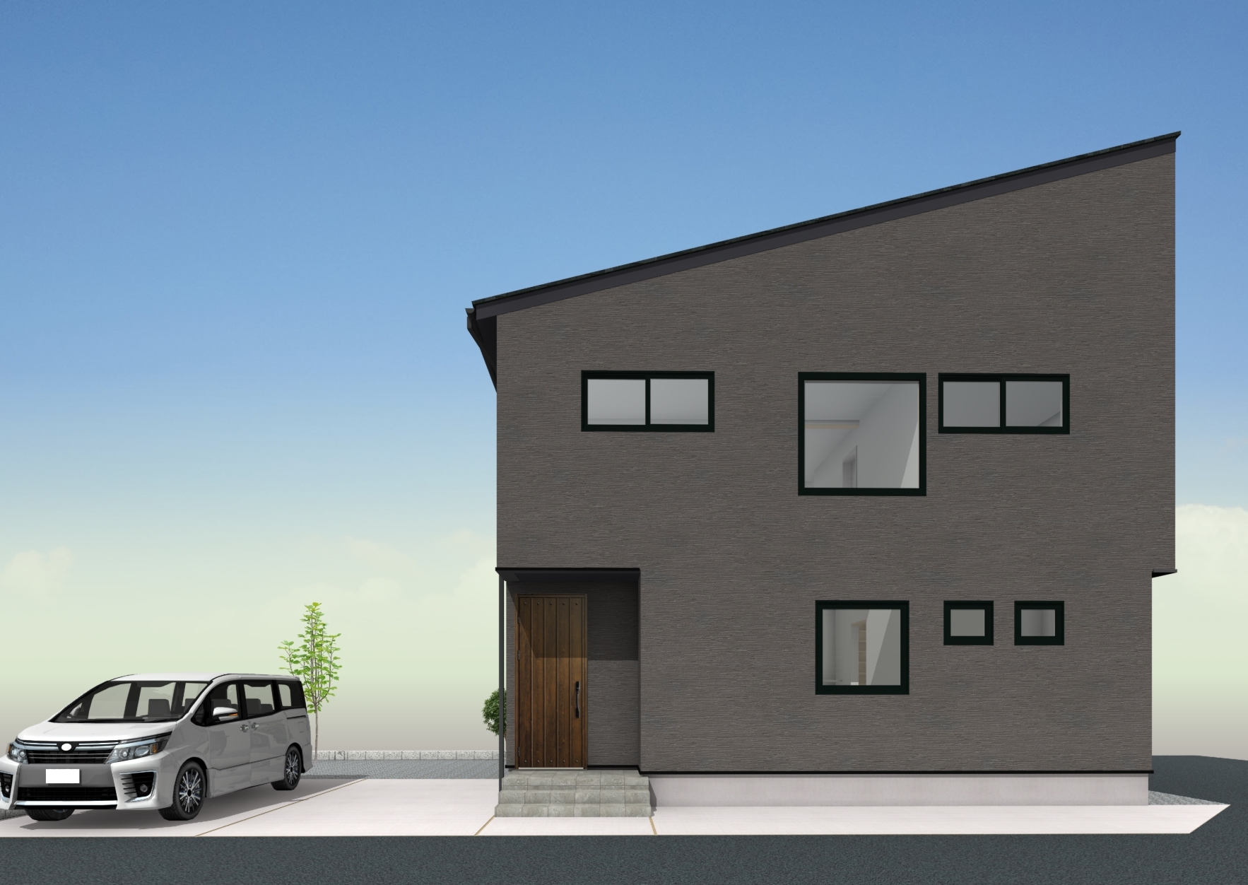 片流れ屋根のシンプルかつスタイリッシュな外観。
