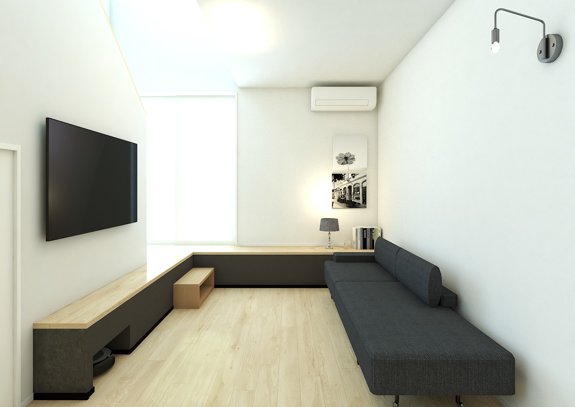 L字型の小上がりスペースが特徴的な約15帖のLDK。