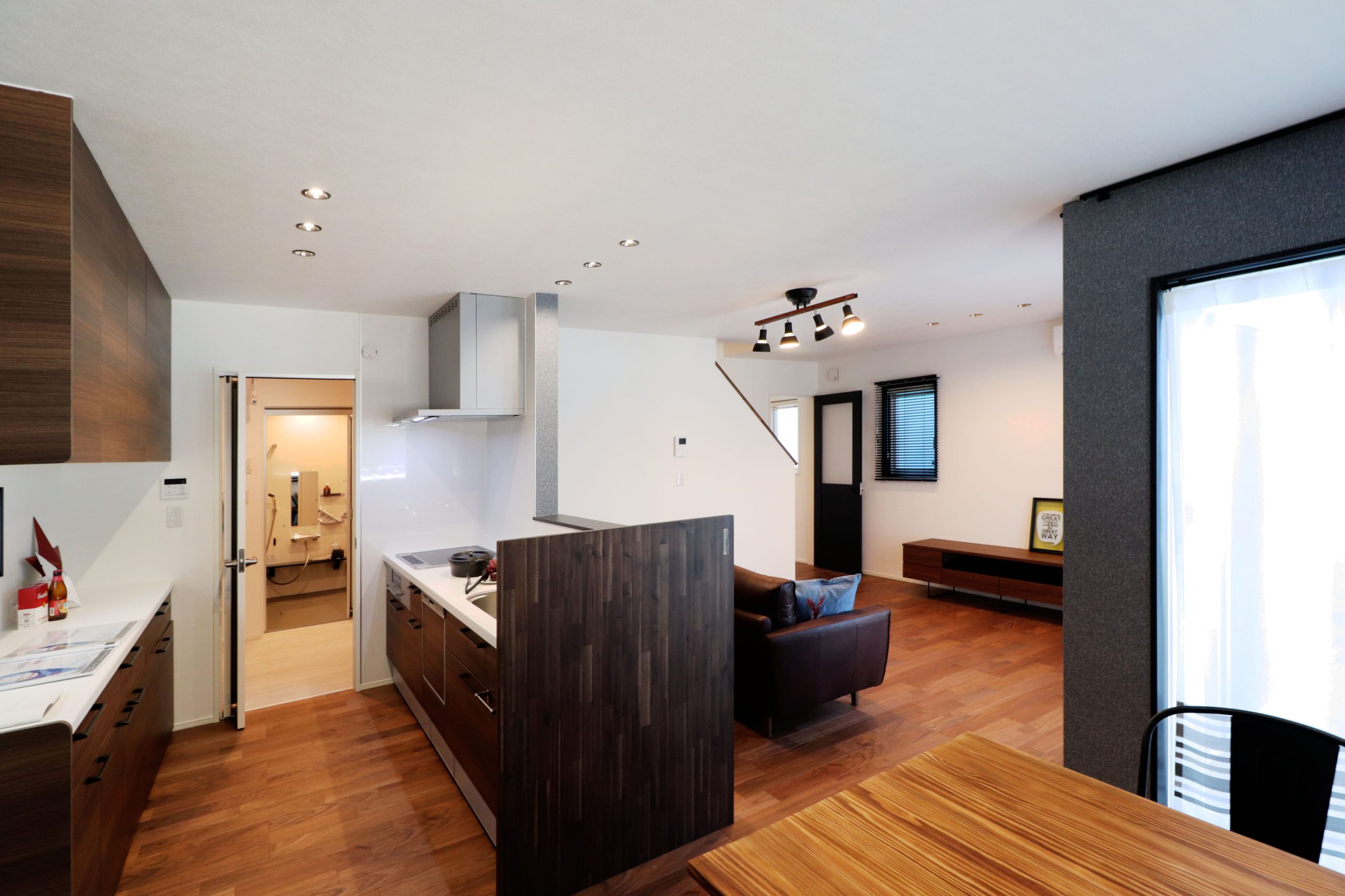 ■キッチンからフロア全体を見渡せるパパママ安心設計