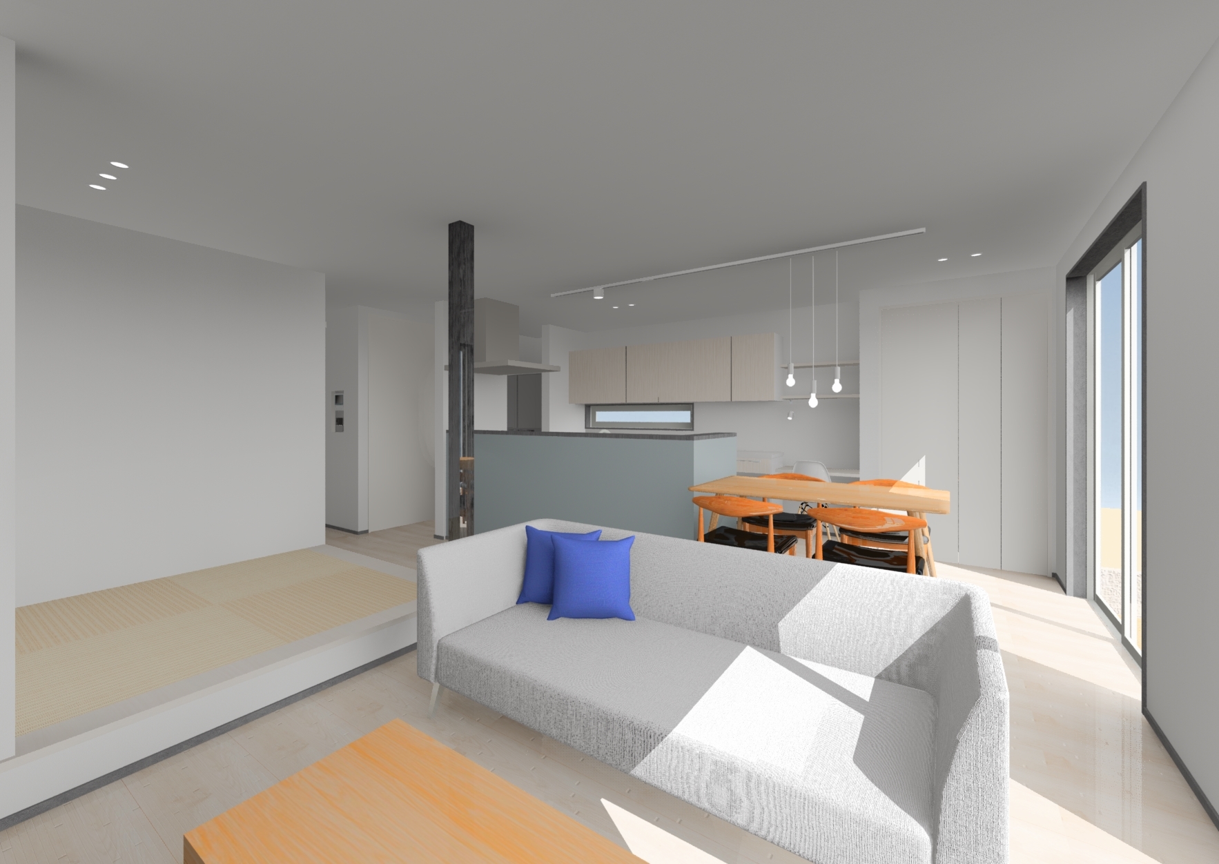 ■LDKは16.5帖と広く、ウッドデッキが隣接しのびのびとした空間に
