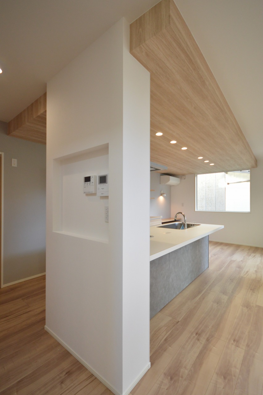 キッチン横にはマグネットが付くリモコンニッチ。*実際の写真