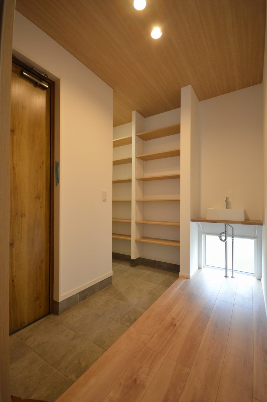 お帰り手洗いのある、間口の広い玄関。