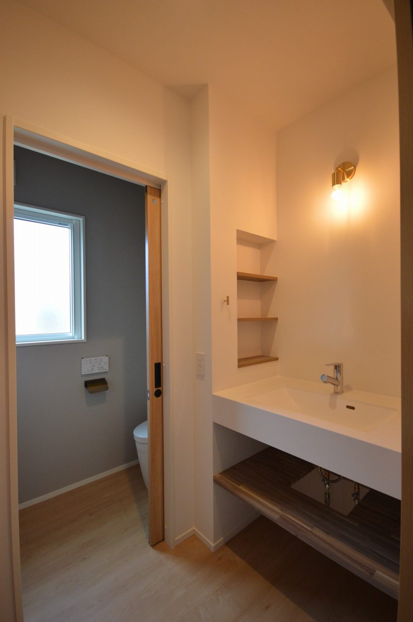 サンワカンパニーの洗面台を設置したお手洗いスペース。