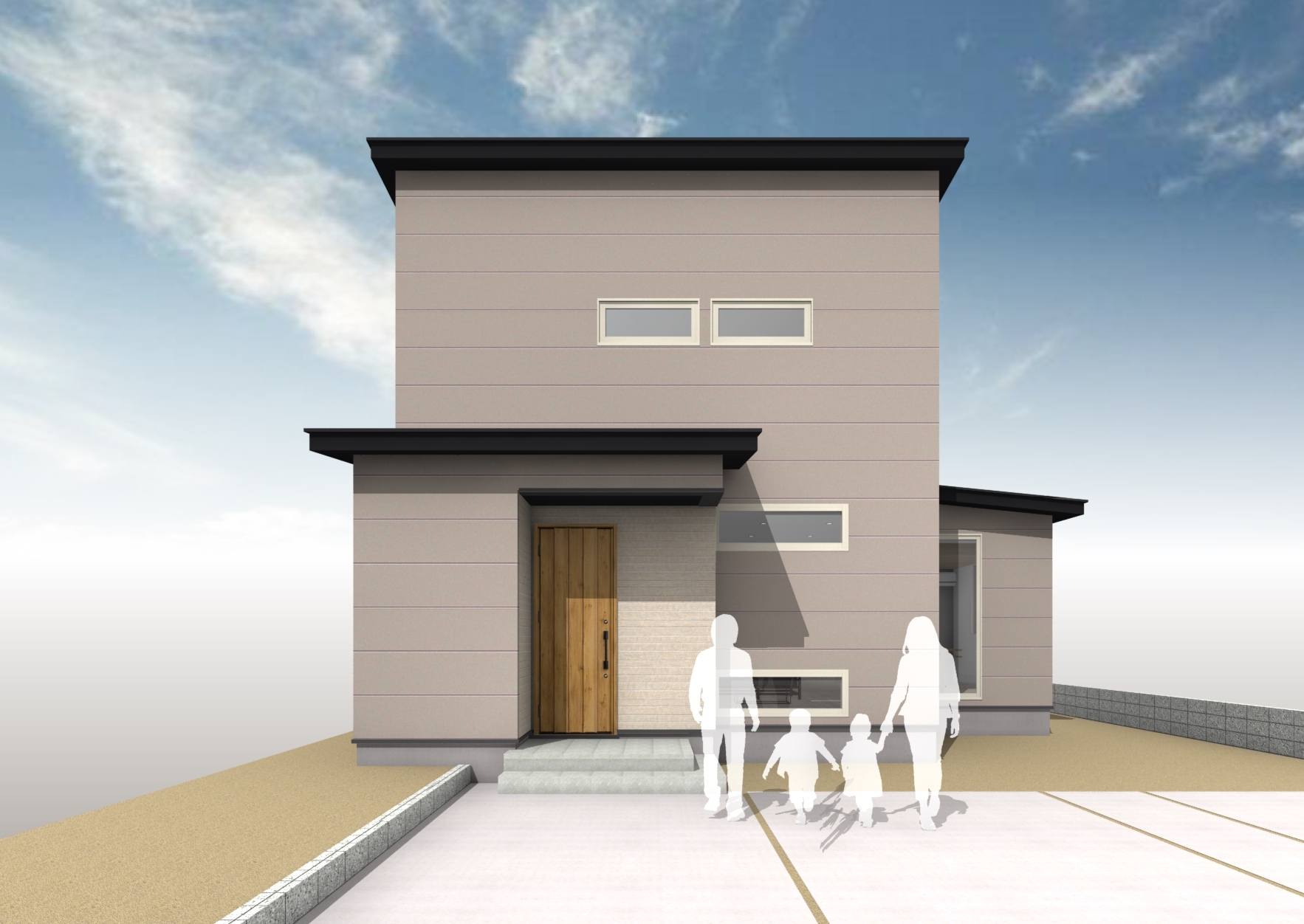 グレージュに木目が優しい外観。*イメージパース