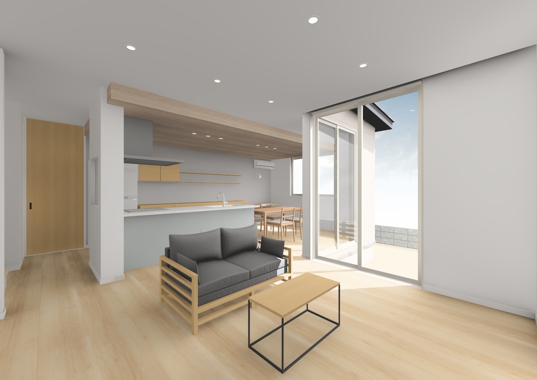 ハイサッシ(窓)が開放的なLDK。*イメージパース