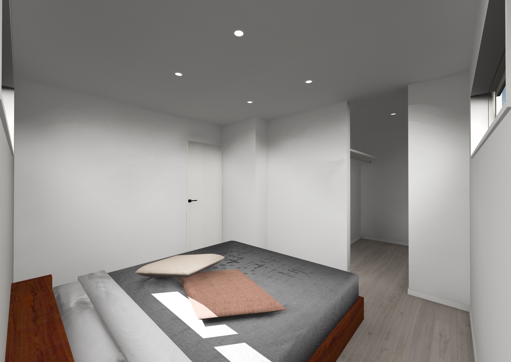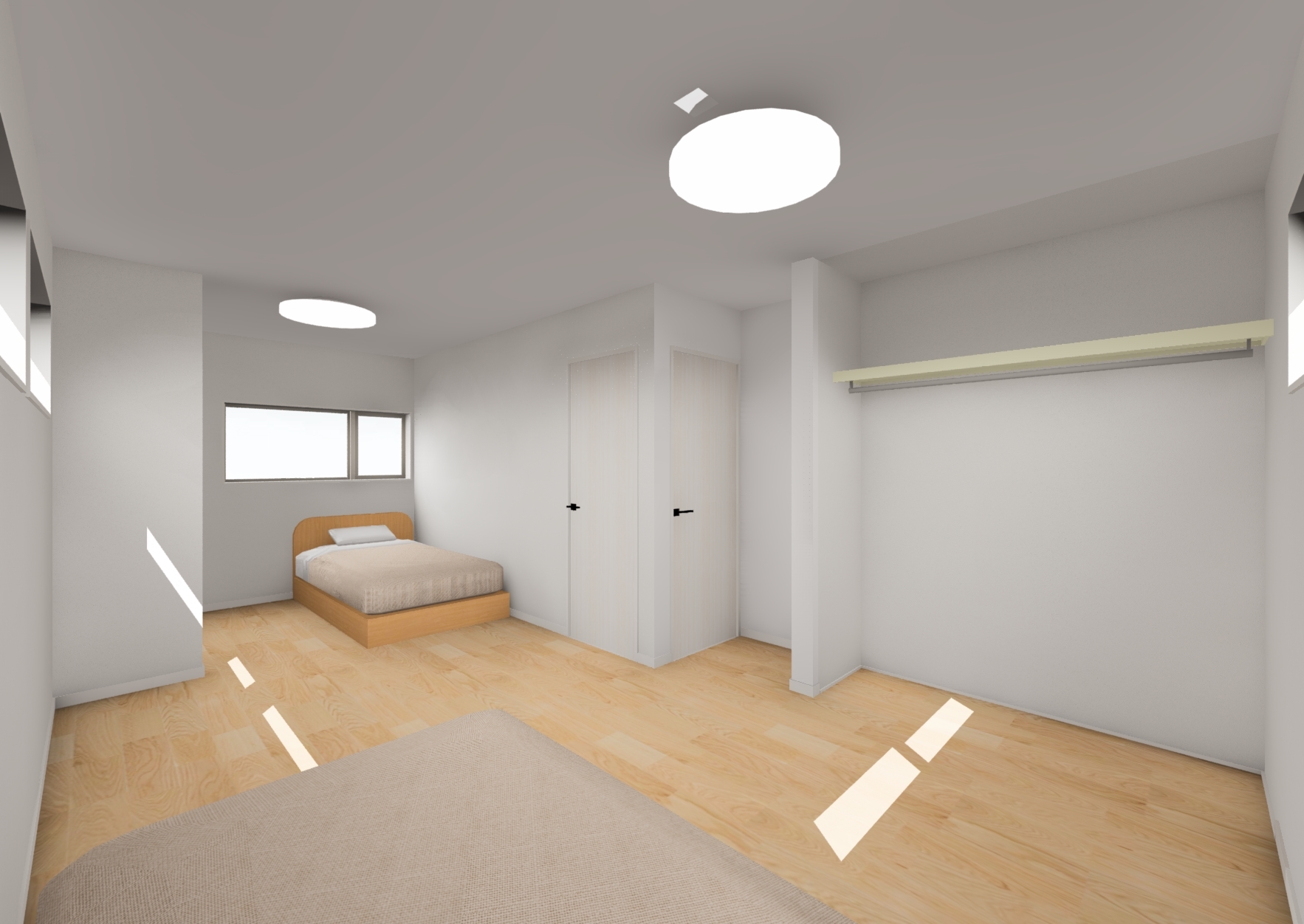ウォークインクローゼットのある寝室。6.8帖のサイズ感が参考になります。*イメージパース