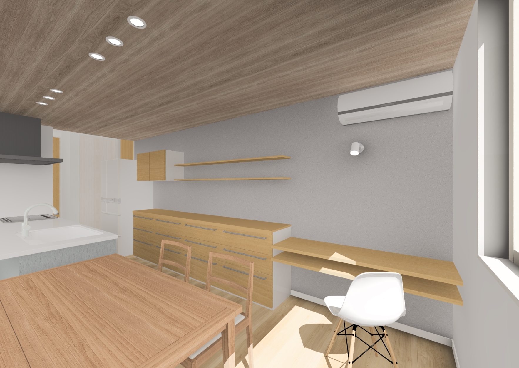 折り下げ天井のダイニングキッチン、