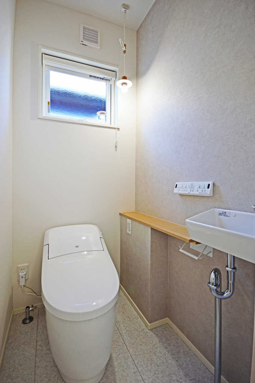 2階トイレはコンパクトながら幅を広くして手洗い器を設置。