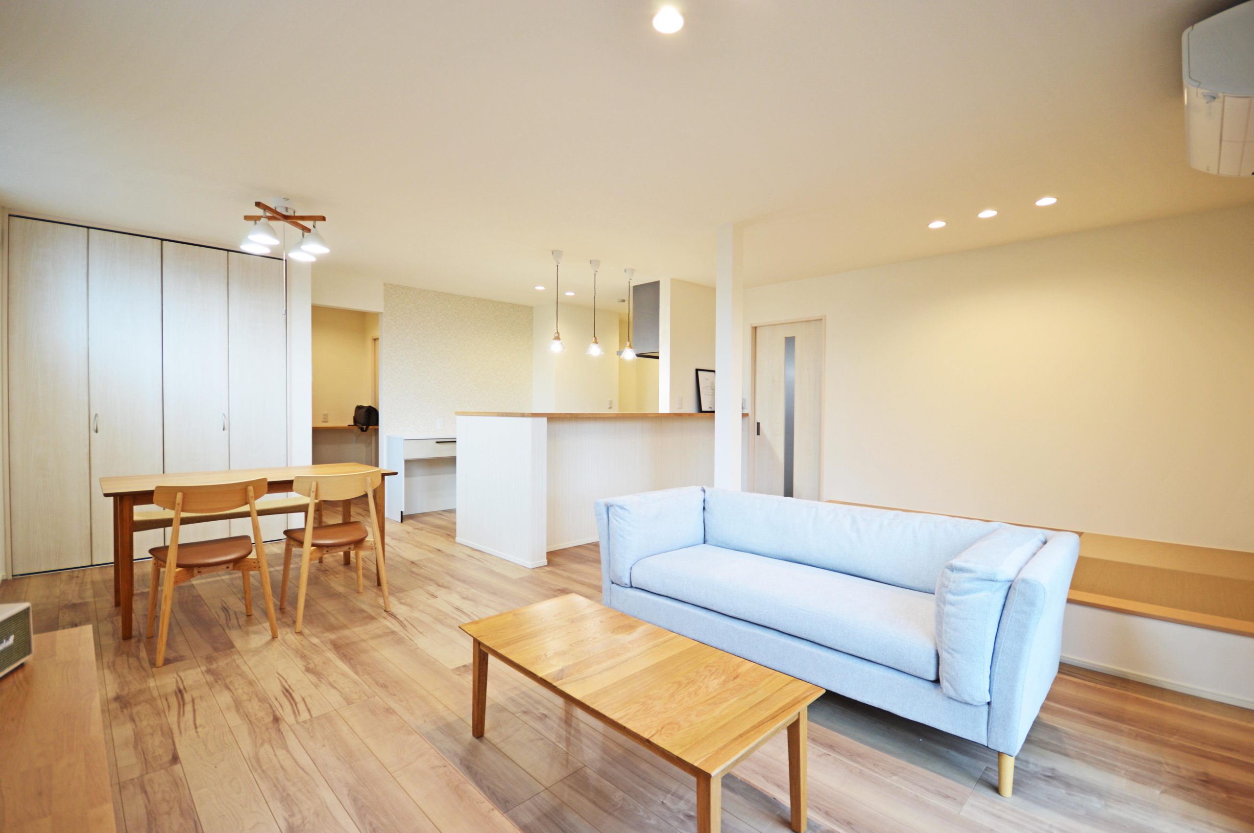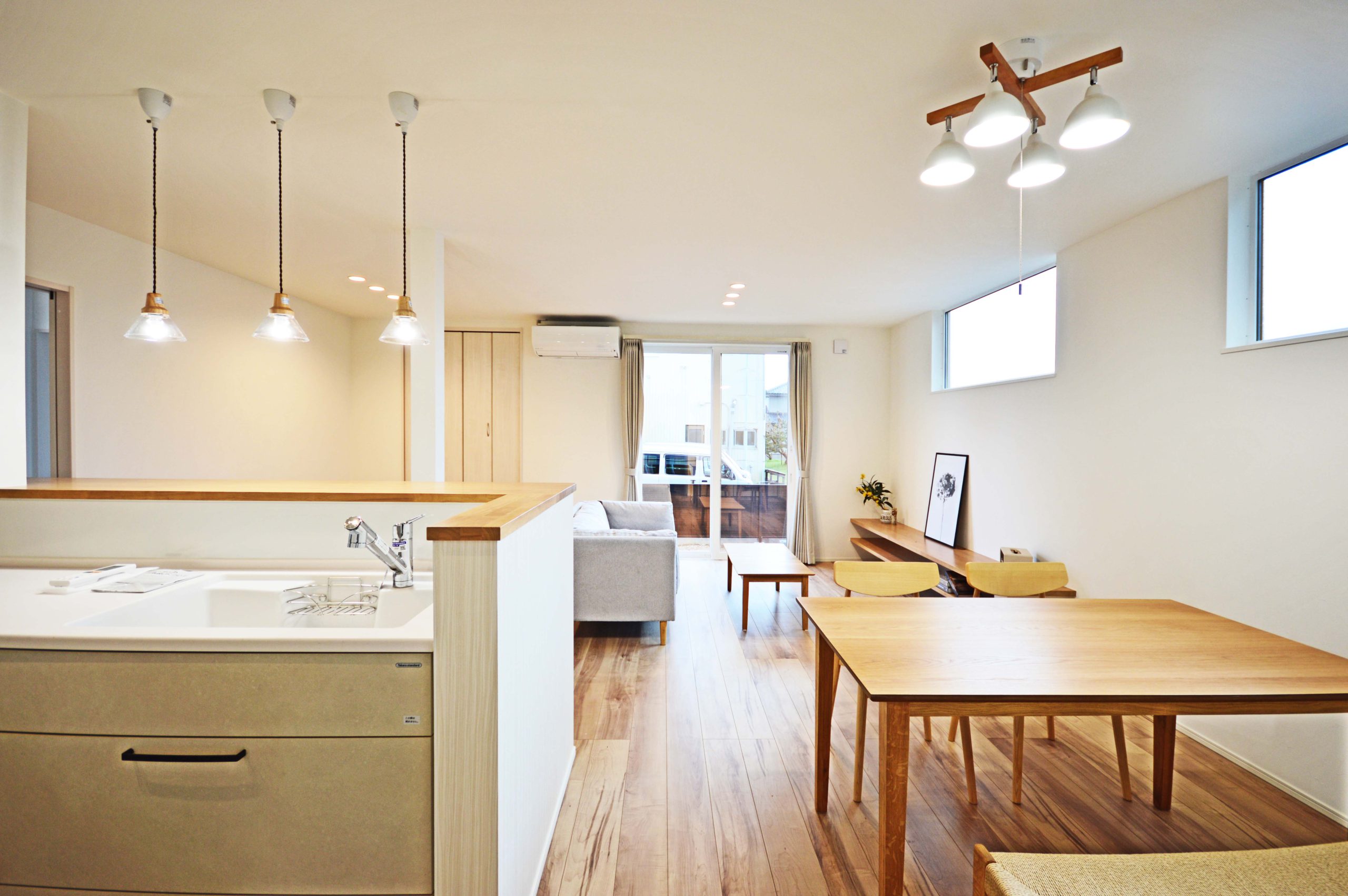 小上がりタタミコーナーと合わせて正方形のLDKとし、全部で20.2帖の広々空間に。