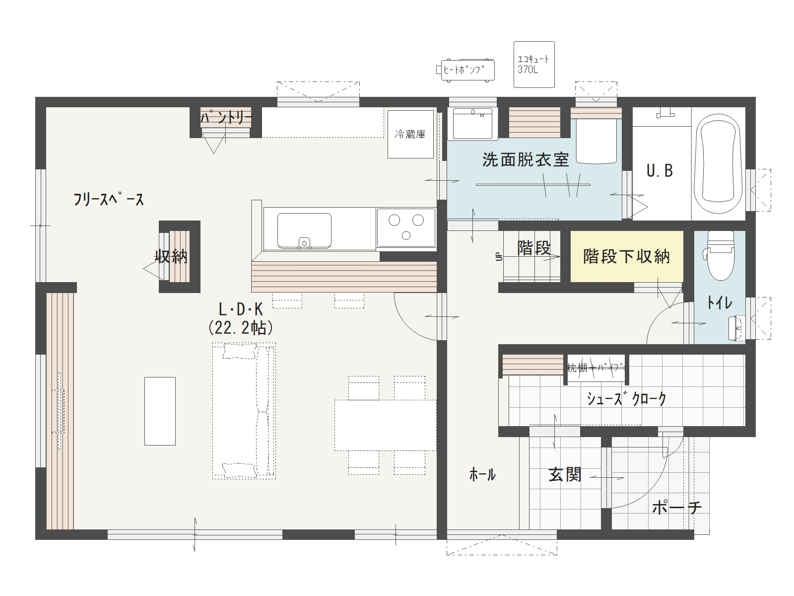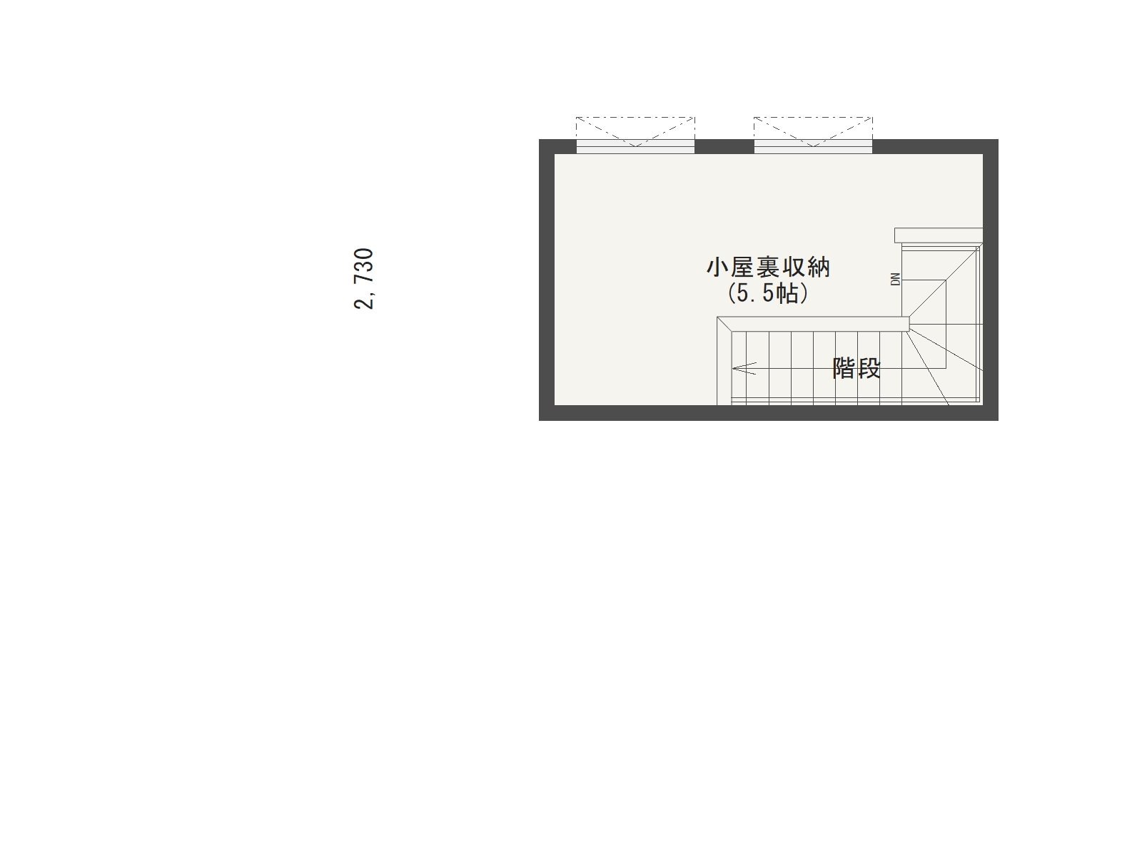 5.5帖の小屋裏収納がありシューズクロークにはキャンプ用品置き場、