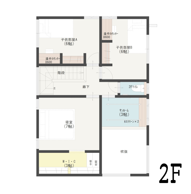居室はすべて6帖以上あるのでのびのび過ごせます。