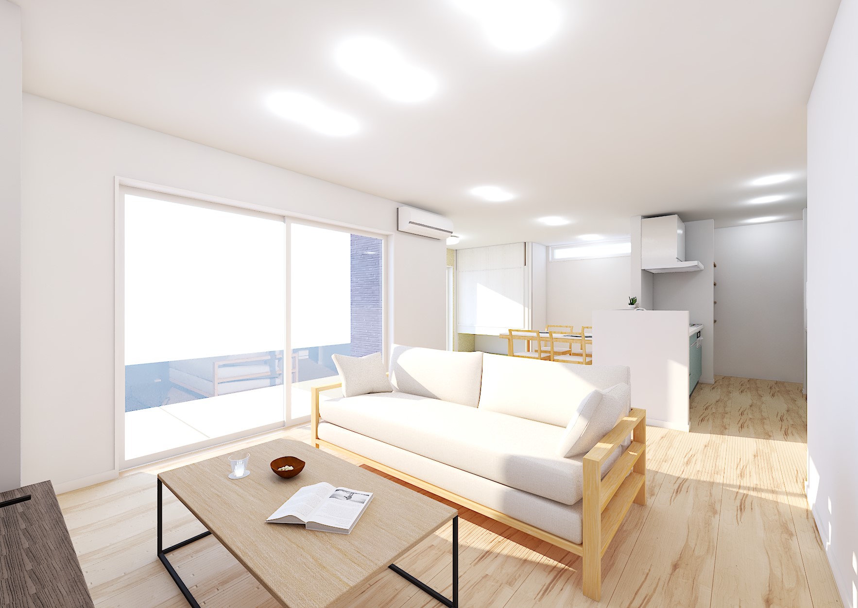 大きなサッシからは陽が差込み明るく開放的なお部屋を体感できます