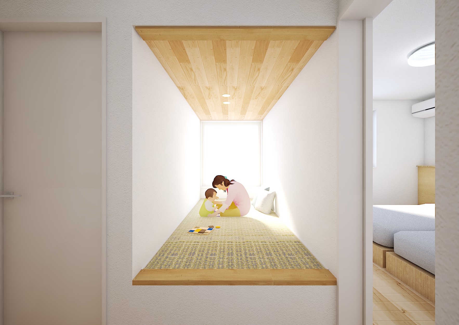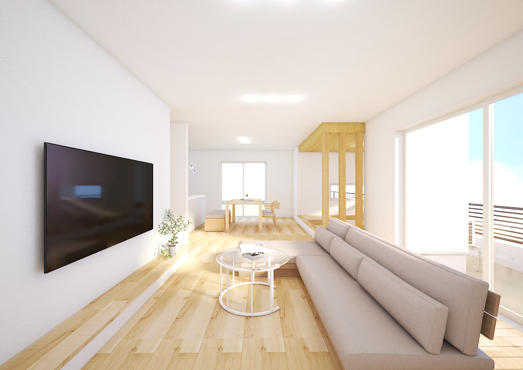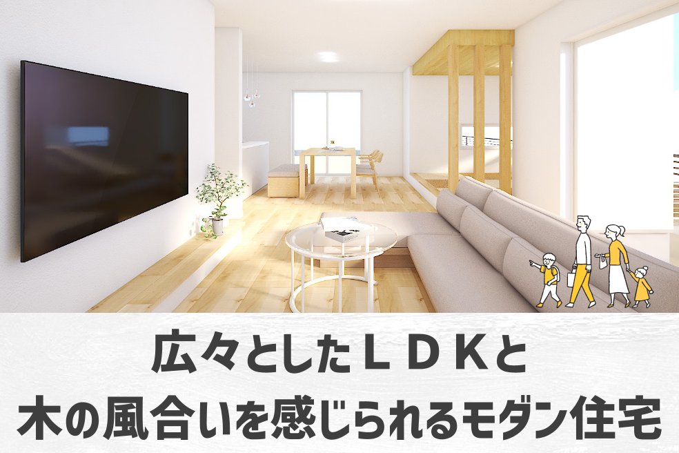小上がり和室を備えたLDKは一体の広い空間として使え、お子様が遊ぶときや、お客様のおもてなしに大活躍