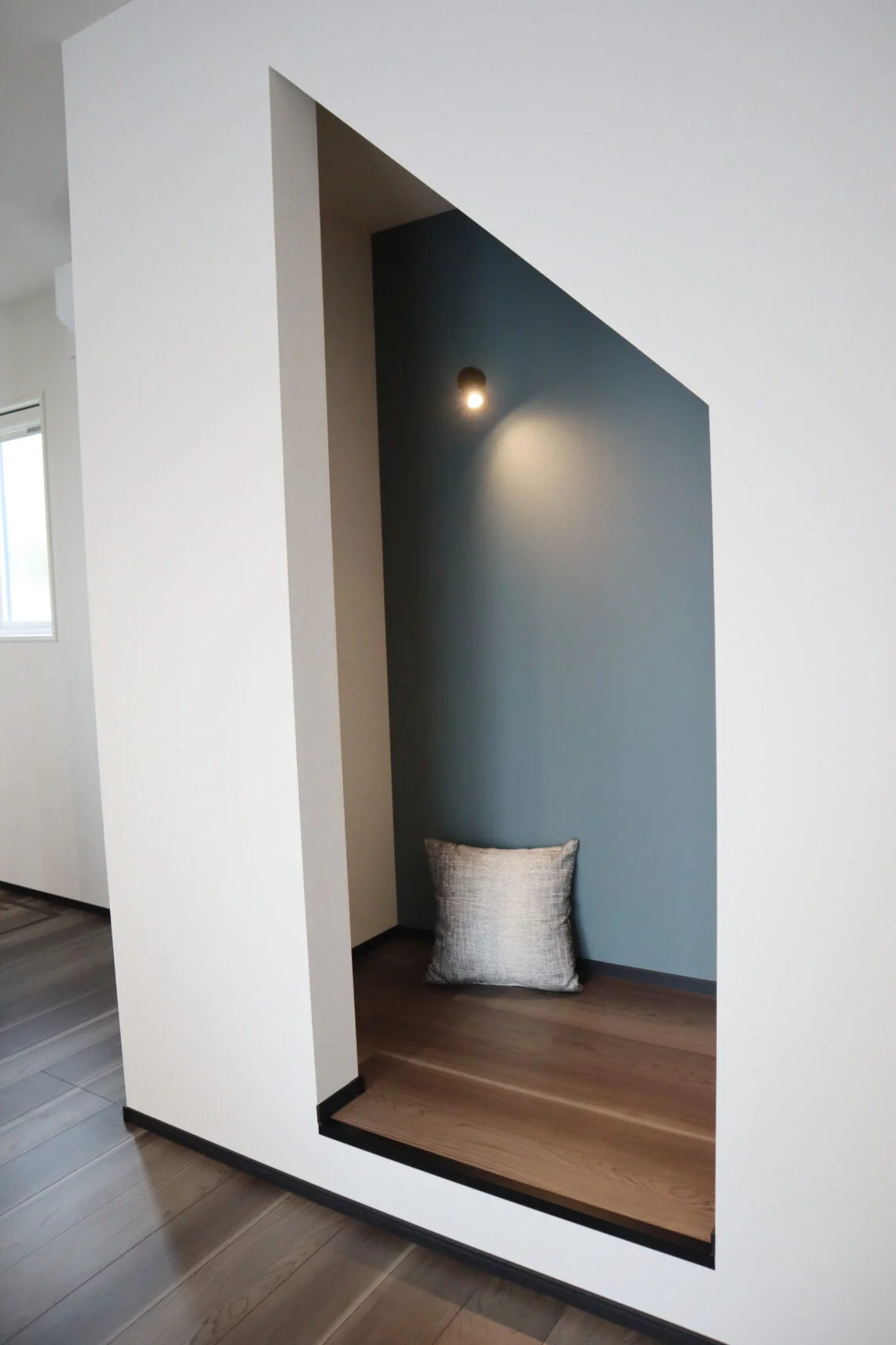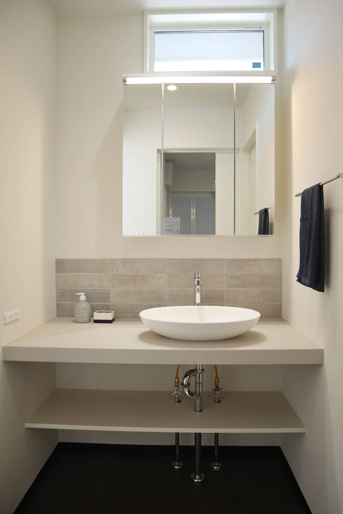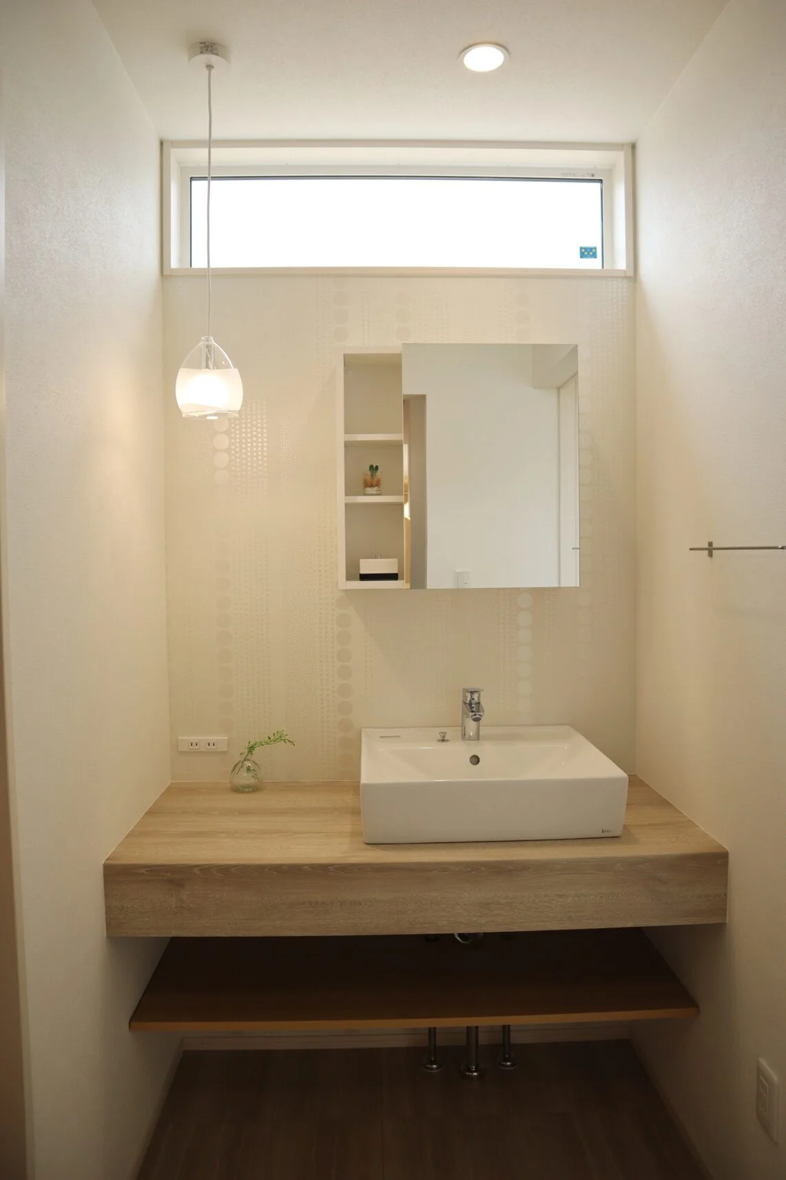 オシャレな独立型造作洗面台や、階段下ヌックと2階寝室の書斎など、一人になりたい時やワークスペースとして活用できる空間も完備
