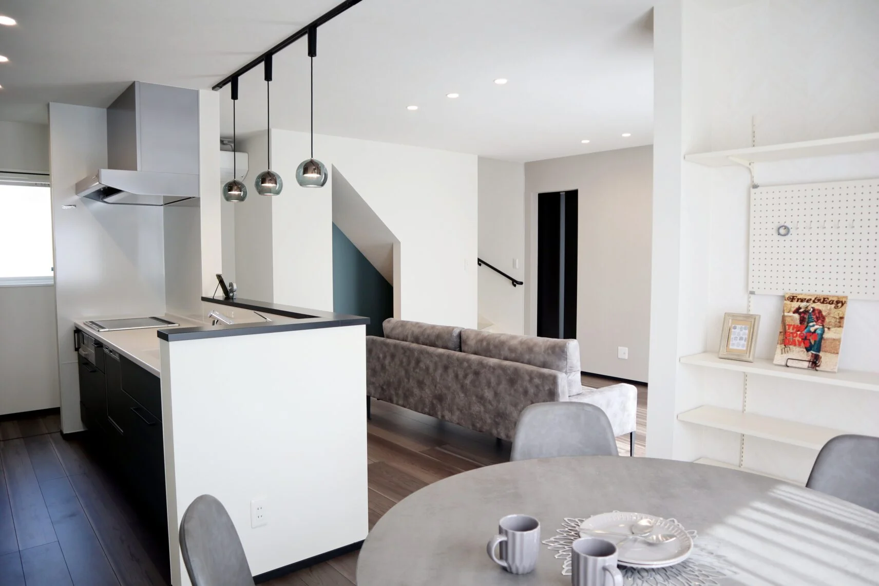 全体をモノトーンでまとめたかっこいい雰囲気のお住まいが完成いたしました◎