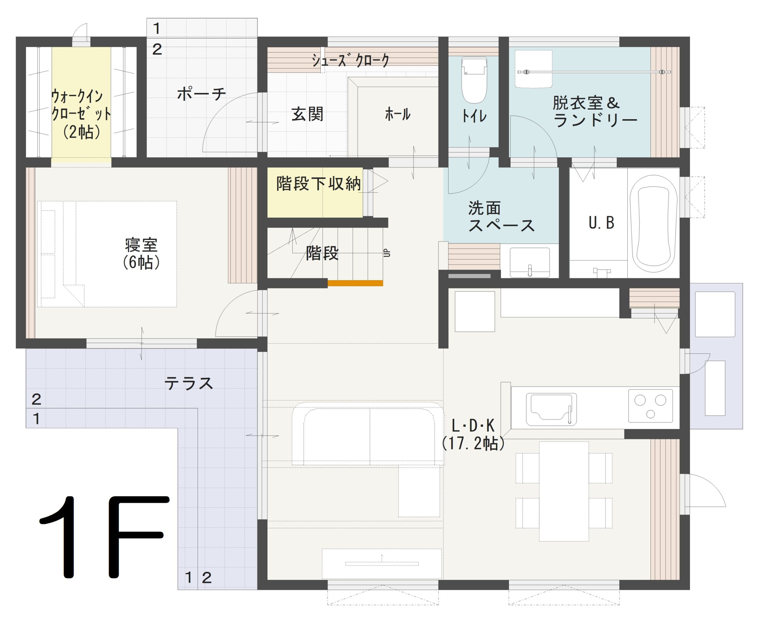 まるで平屋と2階建ての良いとこ取り!寝室が1階にあることで、1階だけで生活が完結できる家。