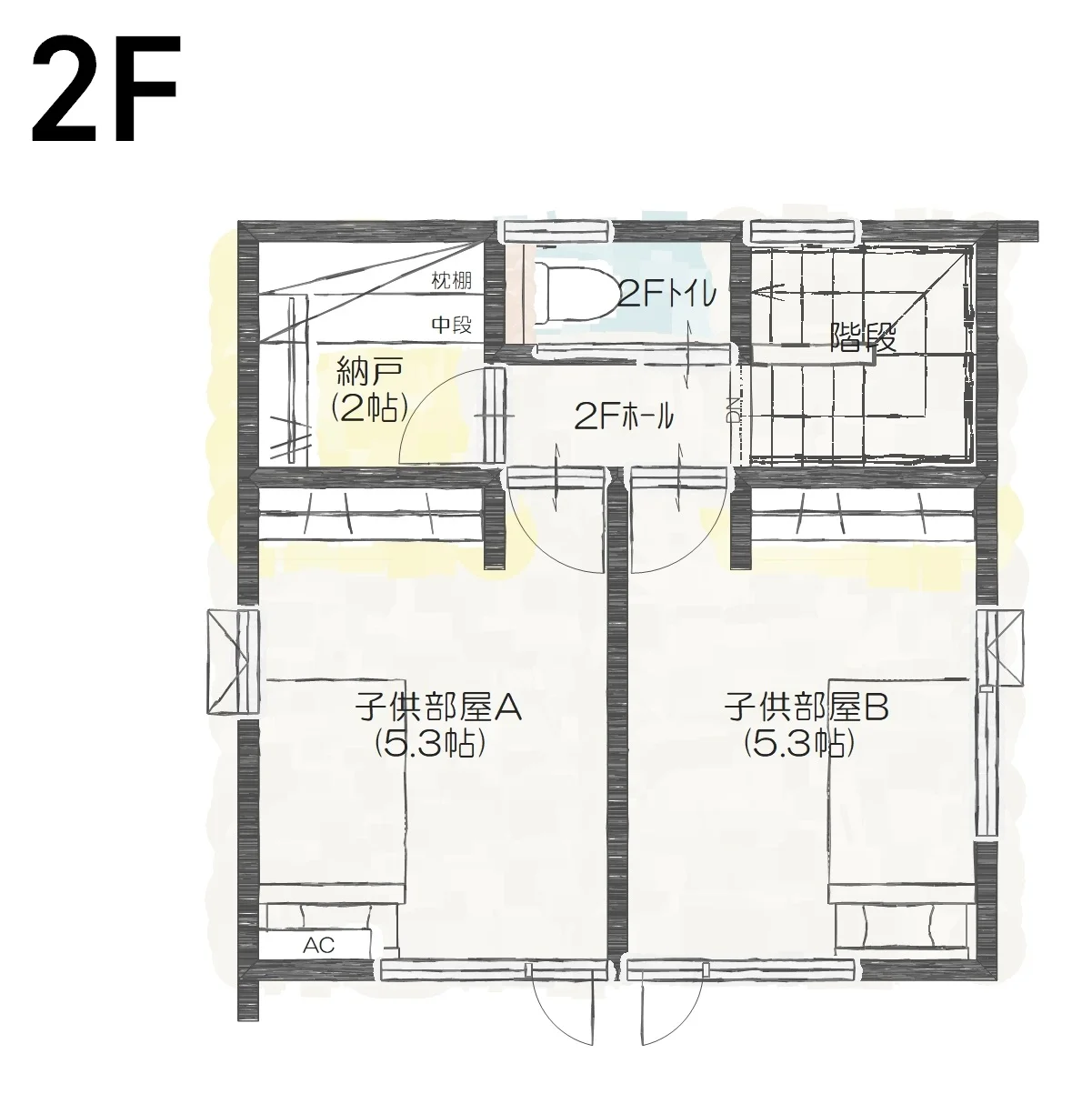✅2階は子ども部屋2つ、納戸、トイレだけのシンプル設計