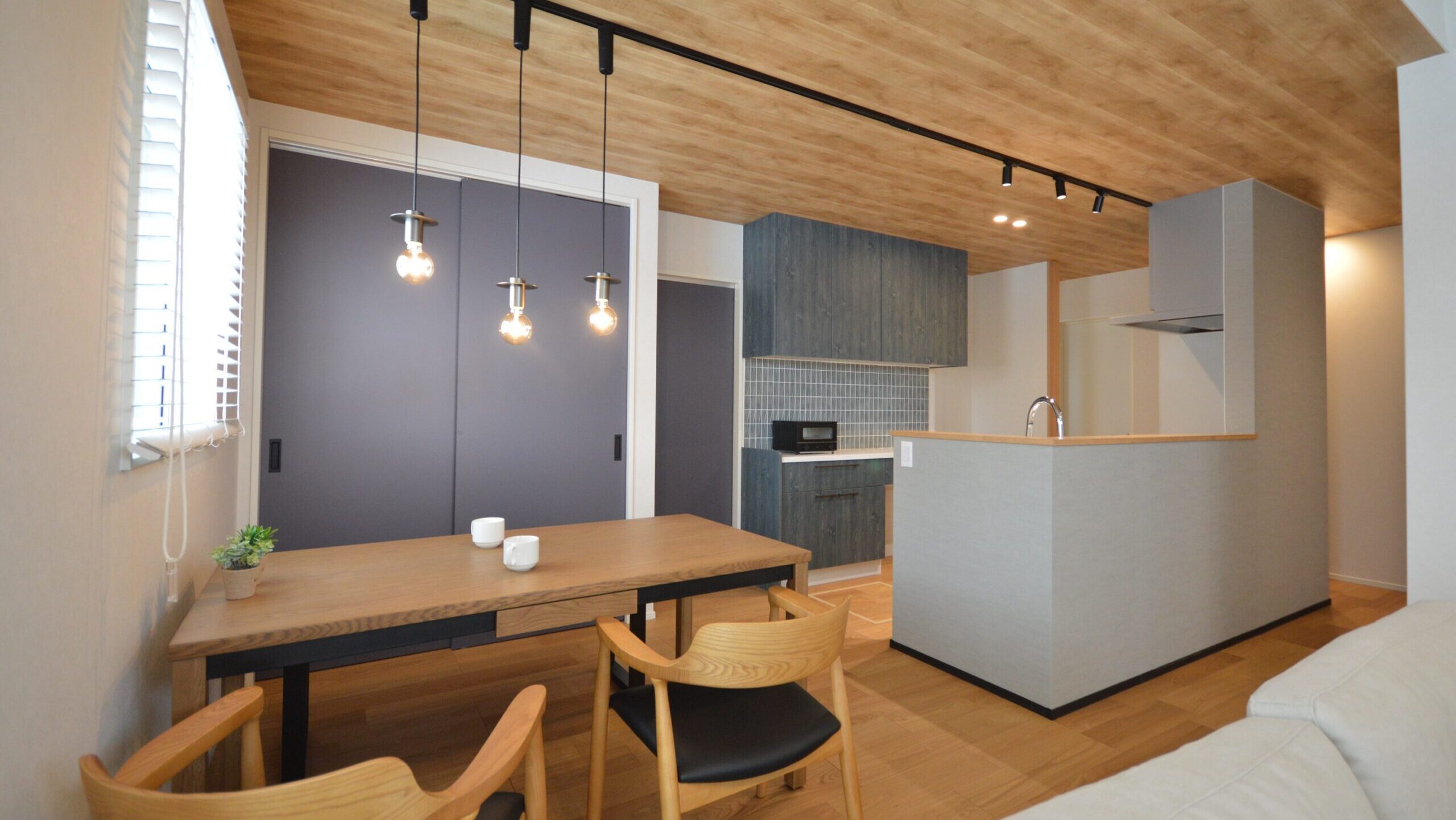 ✅リビング上部の折上天井+梁あらわしで特別な空間を演出