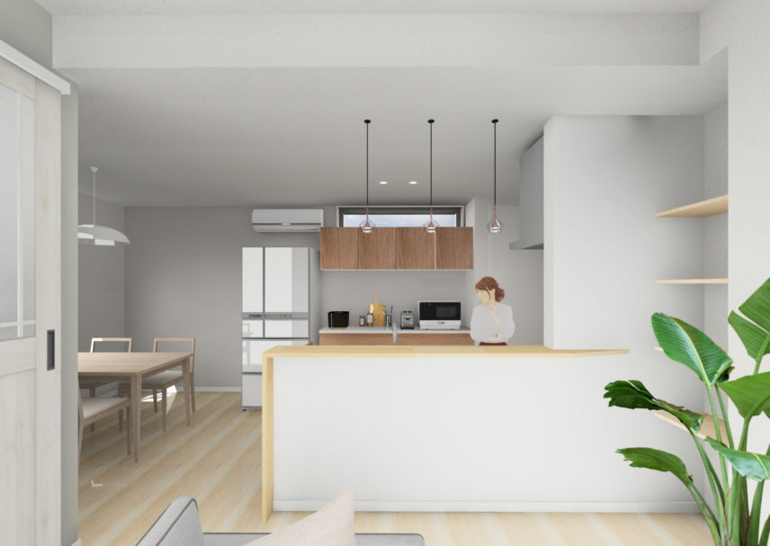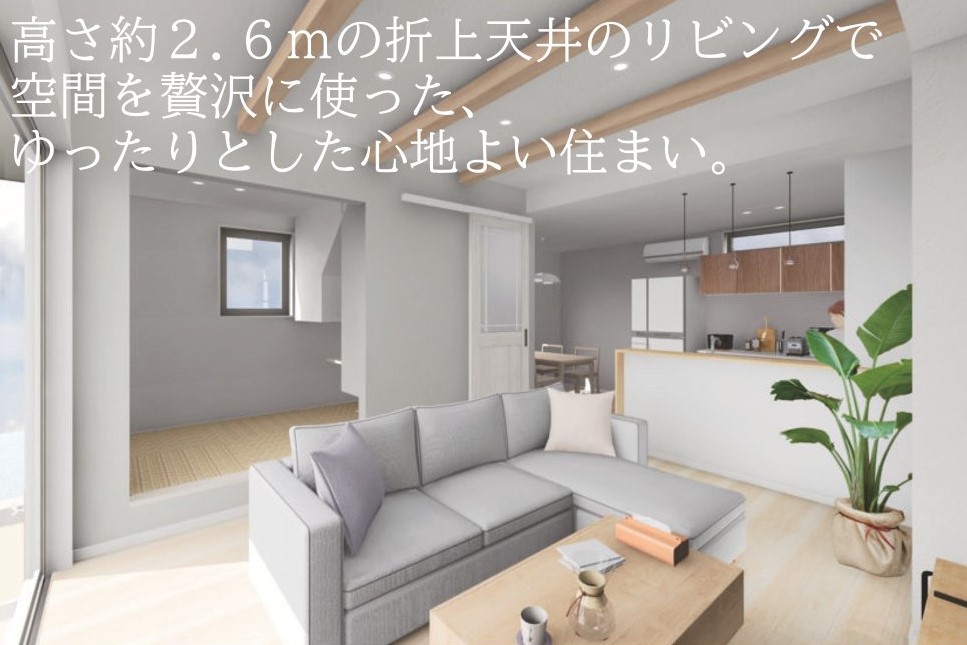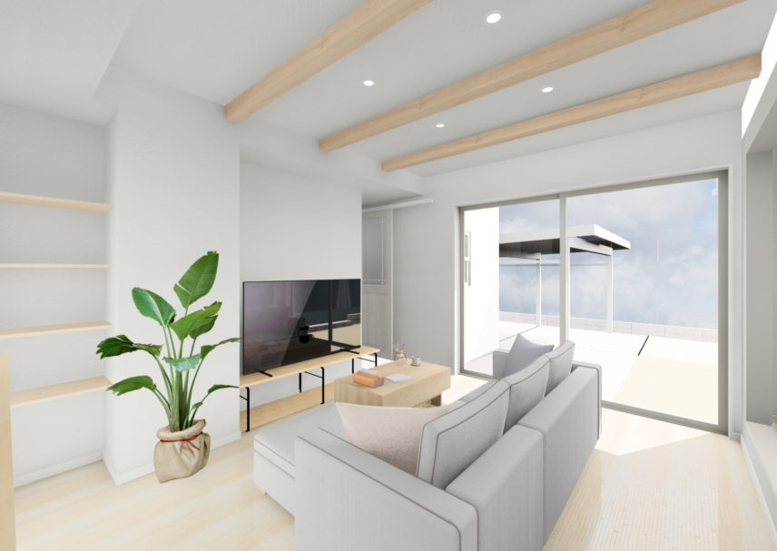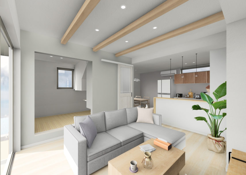 ・LDKは約16帖。南側の大開口サッシからタイルテラスのある外へと視線が抜け、実際の面積以上の広がりを感じさせてくれます。