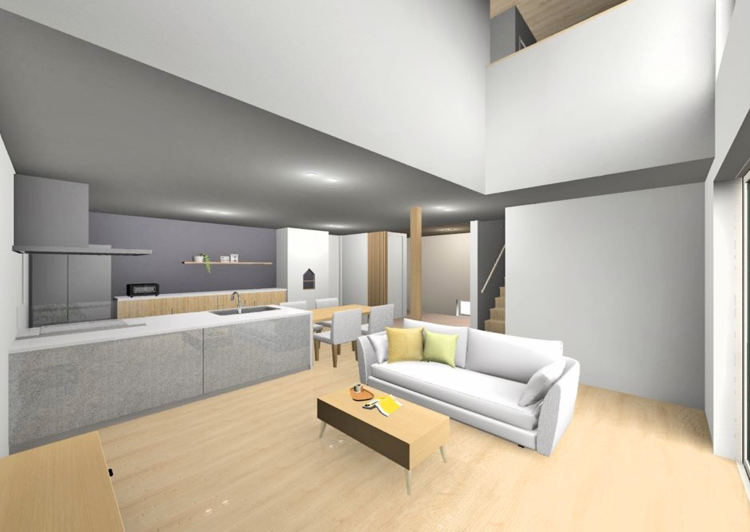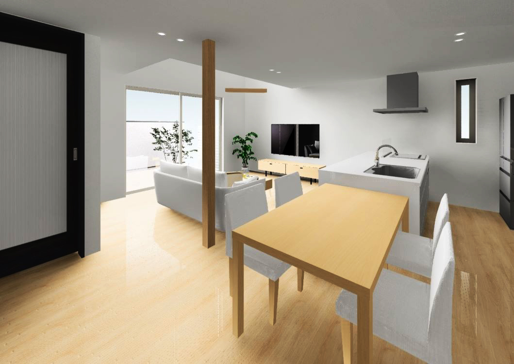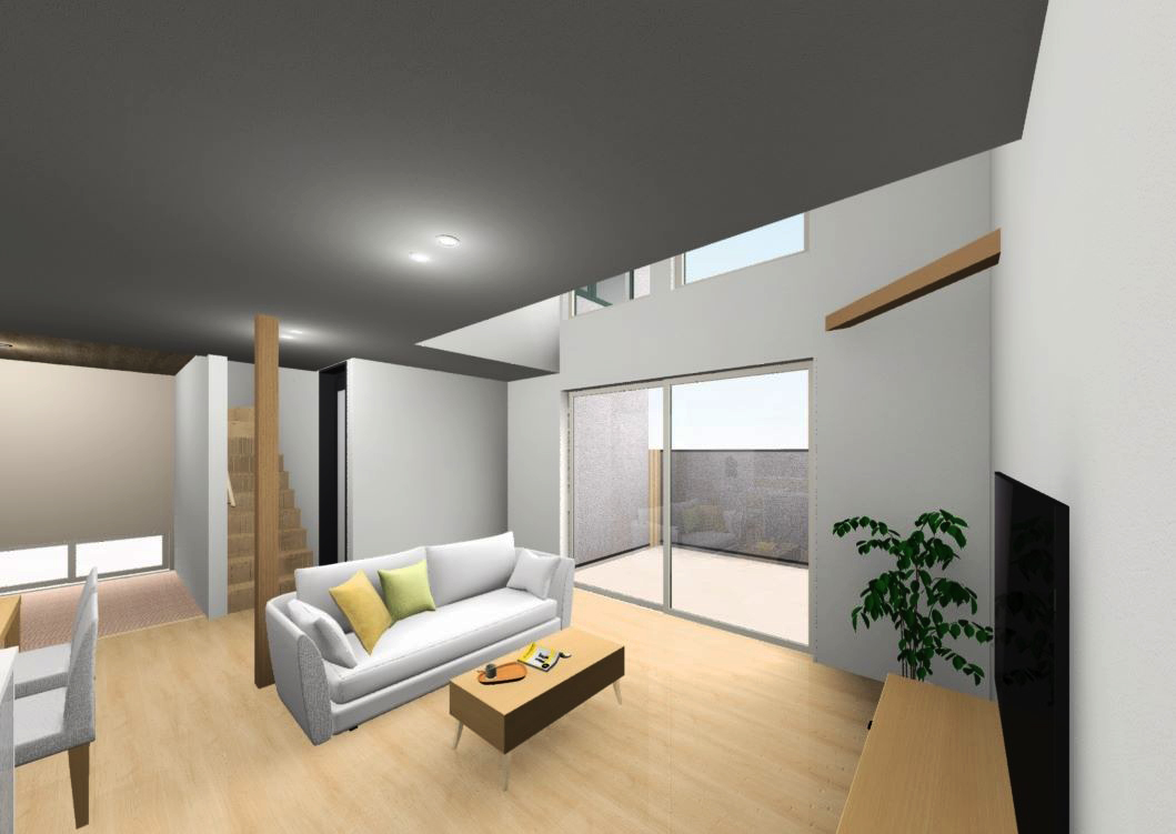 土地の高低差を活かした大迫力かつ箱型のスマートな外観。憩いの場であるLDKに重点を置いた間取り作りと、テラス・和室・吹き抜けといった要素を取り入れLDKが広々とした大空間に。階段をあがるとすぐに9.5帖と大空間の多目的スペースがあり、広さも十分ですのでセカンドリビングやスタディースペースなど様々な用途で使えるスペースです。約8帖のテラスはバーベキューをしても快適な大きさ。周囲を外壁とフェンスで覆っていますので完全プライベートなテラス空間となっております。