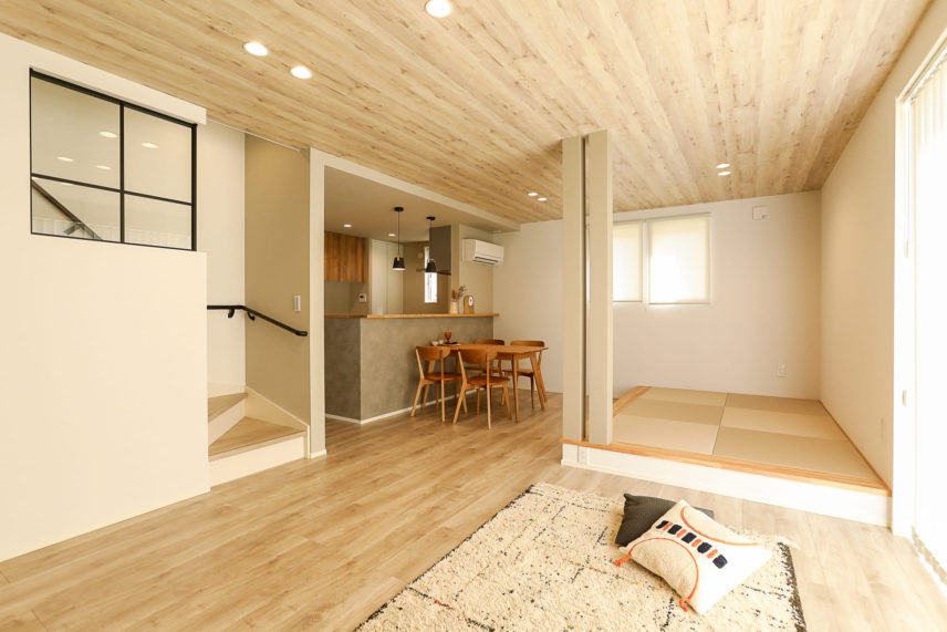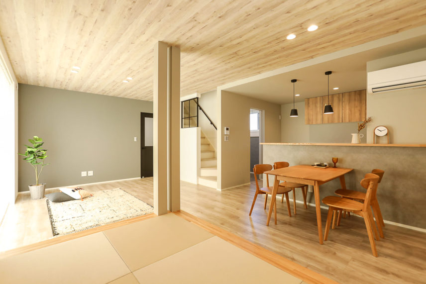 木目×グレーの内装の組み合わせがおとなかわいい雰囲気。