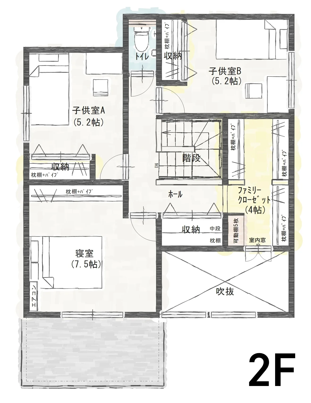 ・2階のファミリークロークは家族で使える広々4帖。衣替えシーズンにラクラク入れ替えできます。