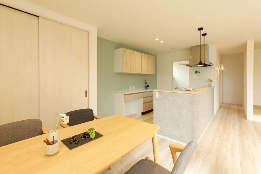 キッチンとダイニングを隣り合わせにすることで、料理の配膳・下膳が楽になり効率的!