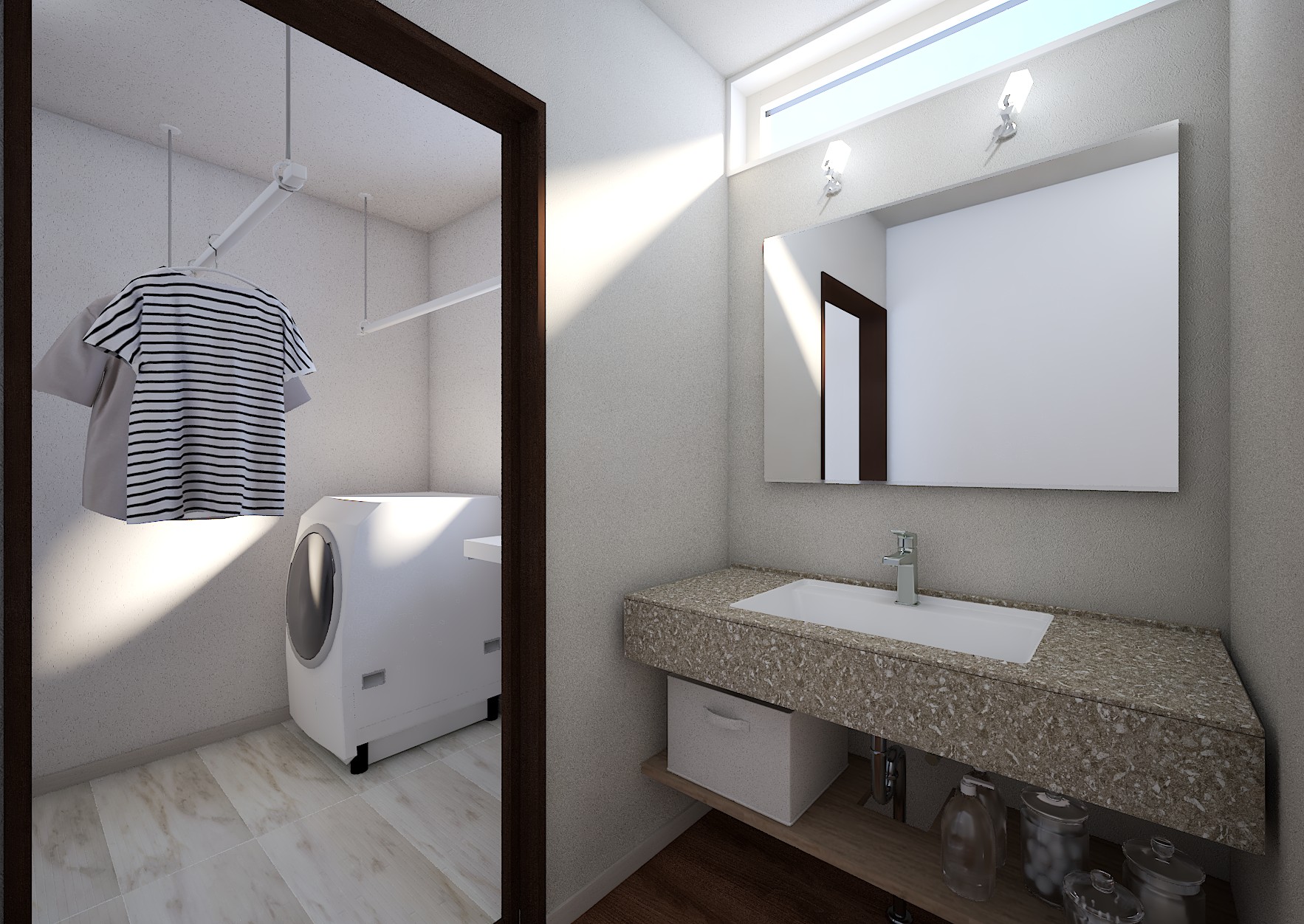 ✓W1200の造作洗面台や2階の手洗い、広いランドリールーム、各所に配置された収納など、家事楽な見どころもいっぱい。