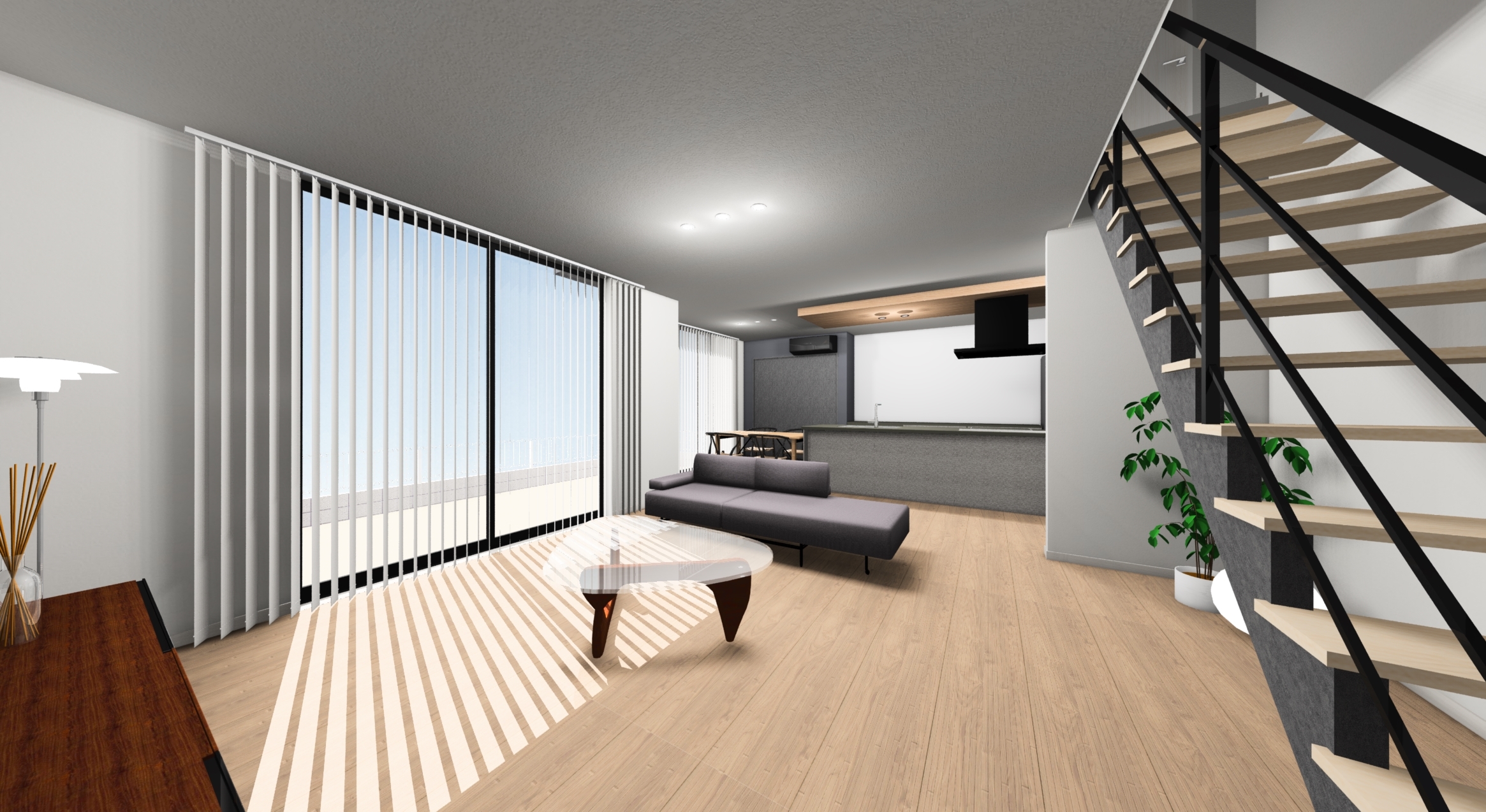 オープン階段のある開放感あふれる大空間リビングに家族が集い、自分たちらしい心豊かな時間が満喫できるお住まいが完成いたしました。回遊動線を活かしたシンプルで無駄のない空間のつながりが暮らしやすさを作り出しています。子育て世代にピッタリの住まいのカタチを是非この機会にご覧ください。