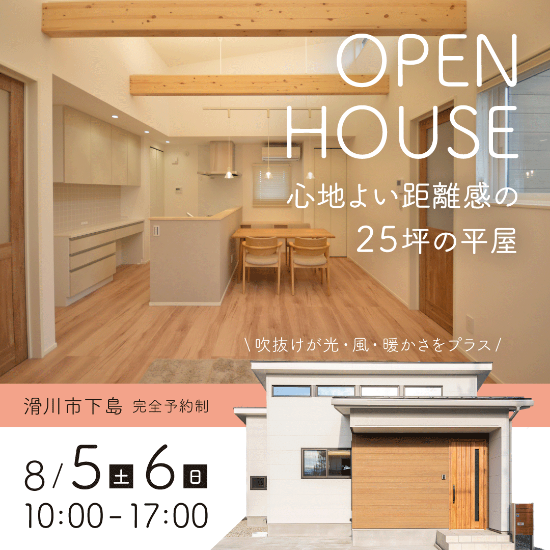 延床面積 約25坪の狭小住宅ながら、平屋・吹抜け・現し梁など人気のアイテムをバランスよく取り入れた建売住宅です。