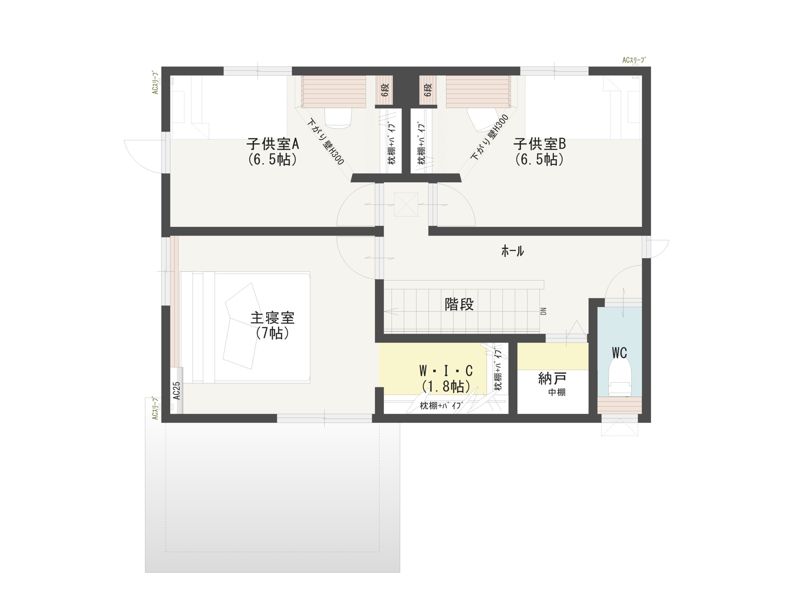 2階に各居室をしっかり設け、子供室は収納とスタディーカウンターをまとめた新しい形。