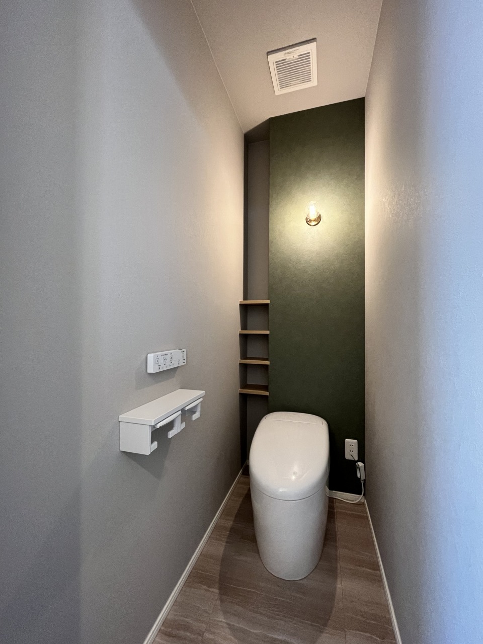 1段1個、トイレットペーパーもインテリアになるトイレ。