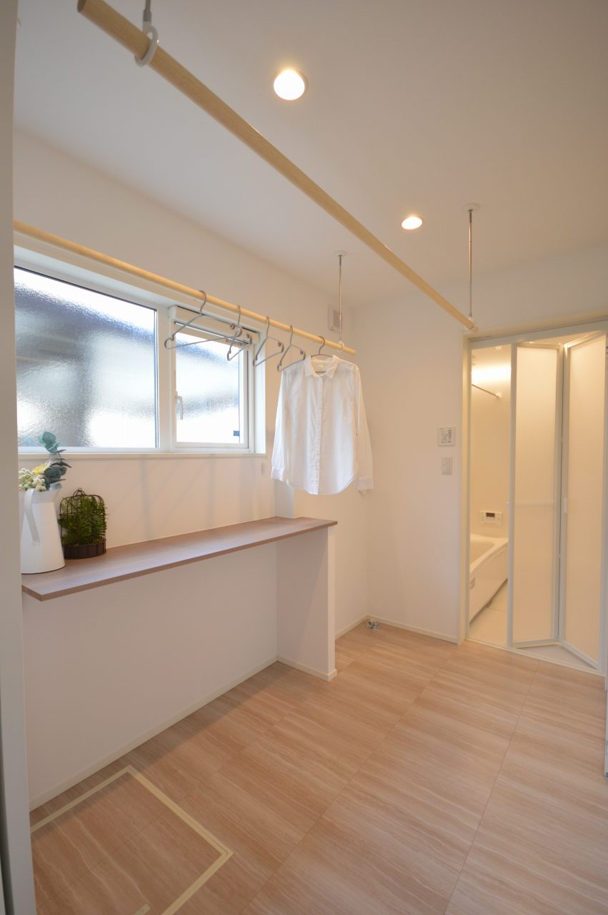 干してすぐ畳める、回遊動線の途中にあるランドリー。