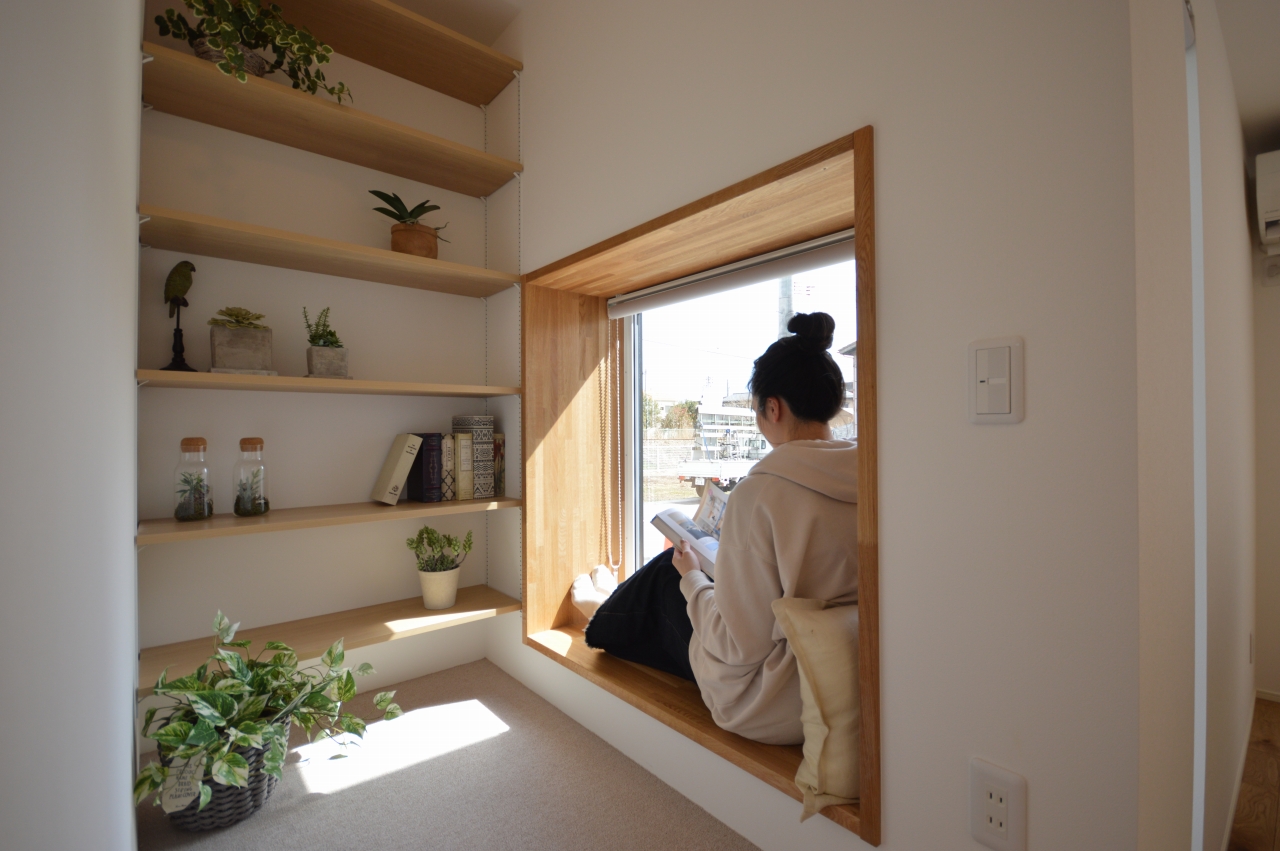 LDKの一部に籠れる窓際ヌックのあるお家。