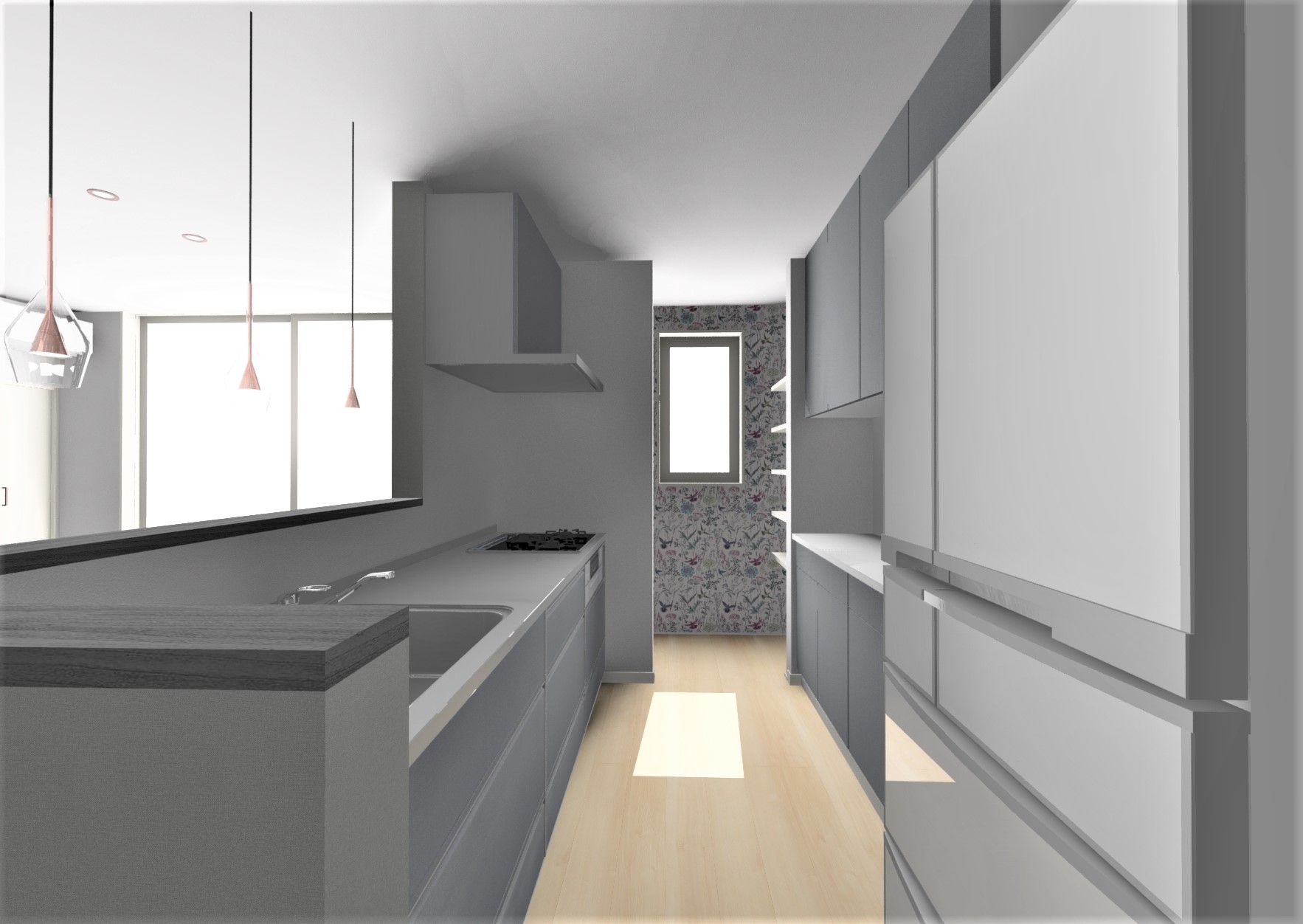 キッチンの奥にパントリー。