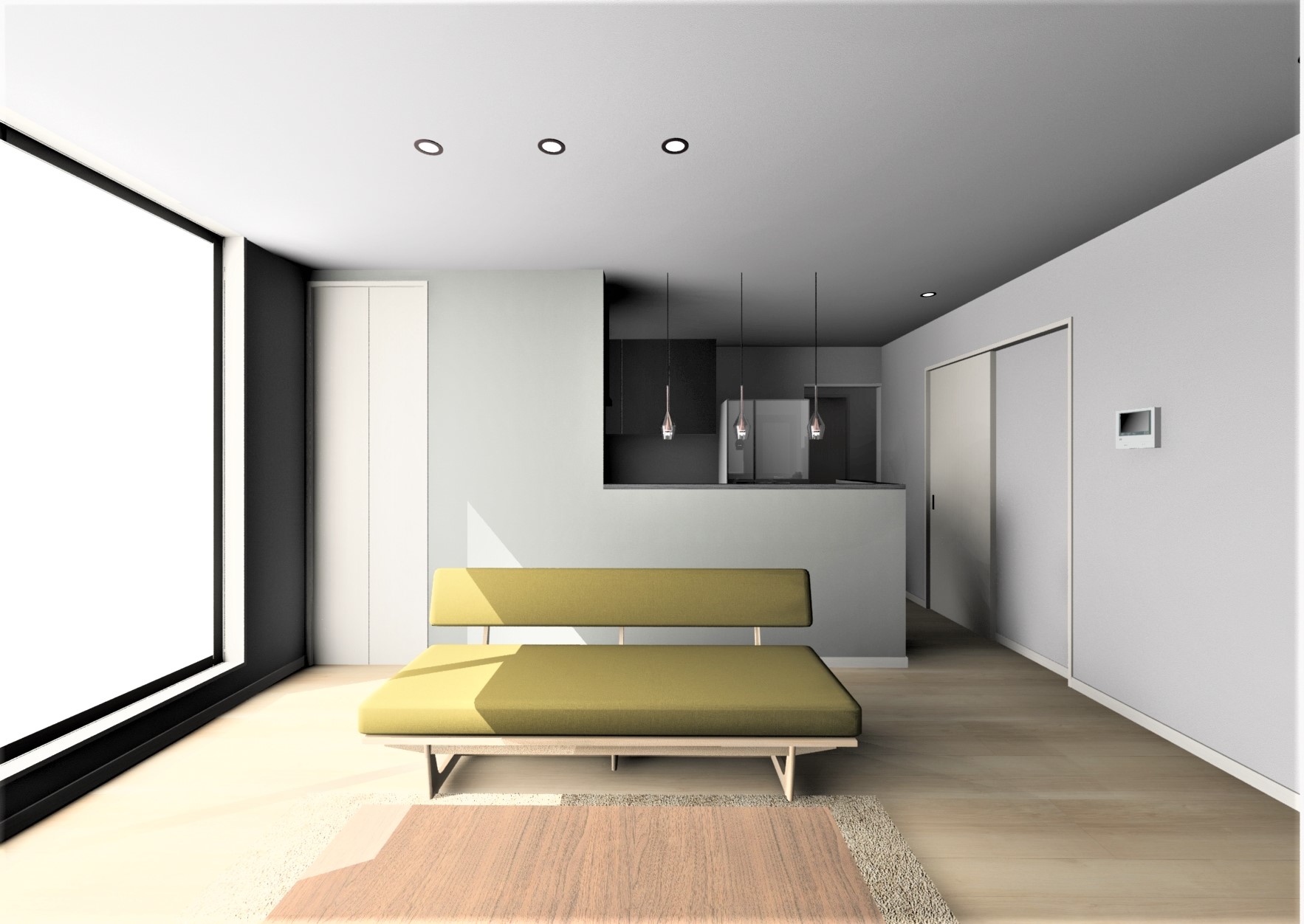 大きな窓から明るい光が入るリビング。
