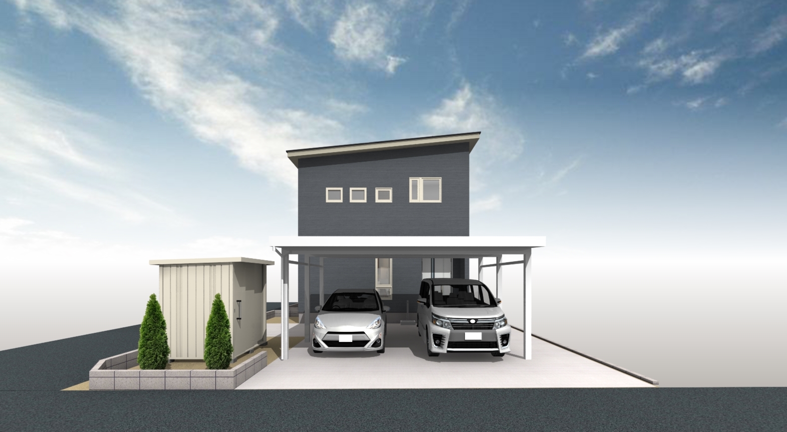 既存敷地を活かした建て方でシンプルな外観に。