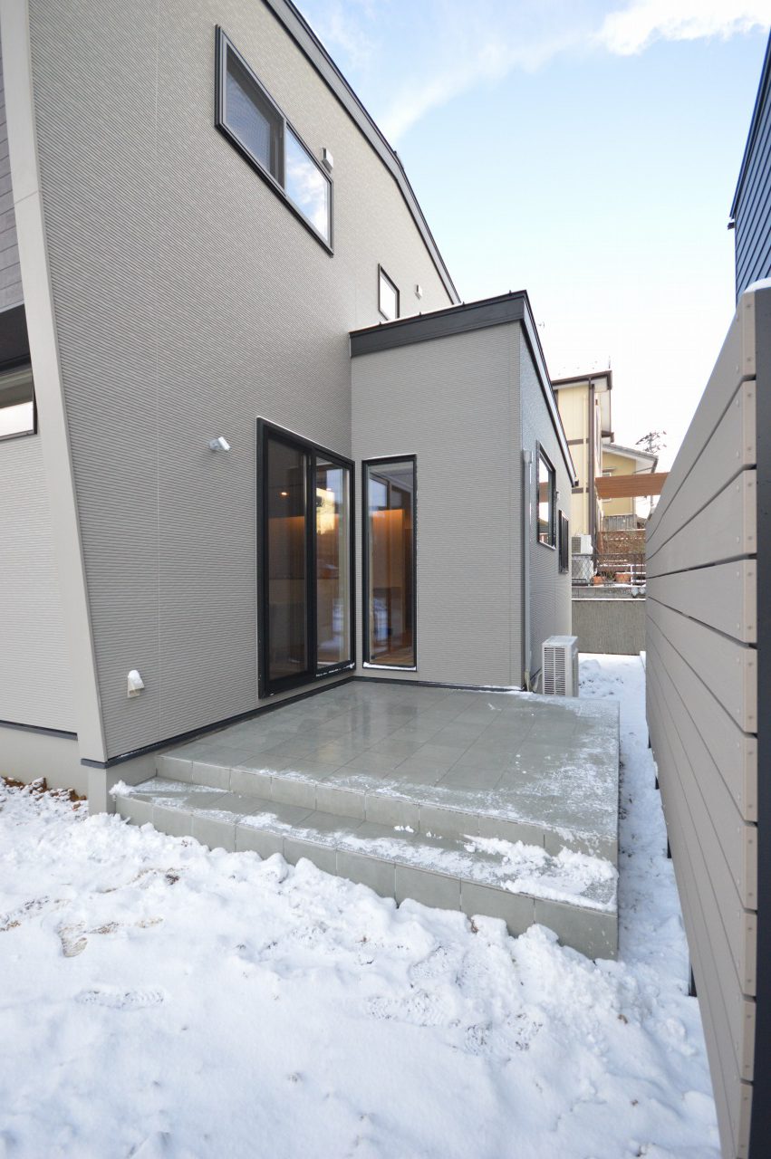 分譲地でも人目を気にせず過ごせるタイルテラスのあるお家。
