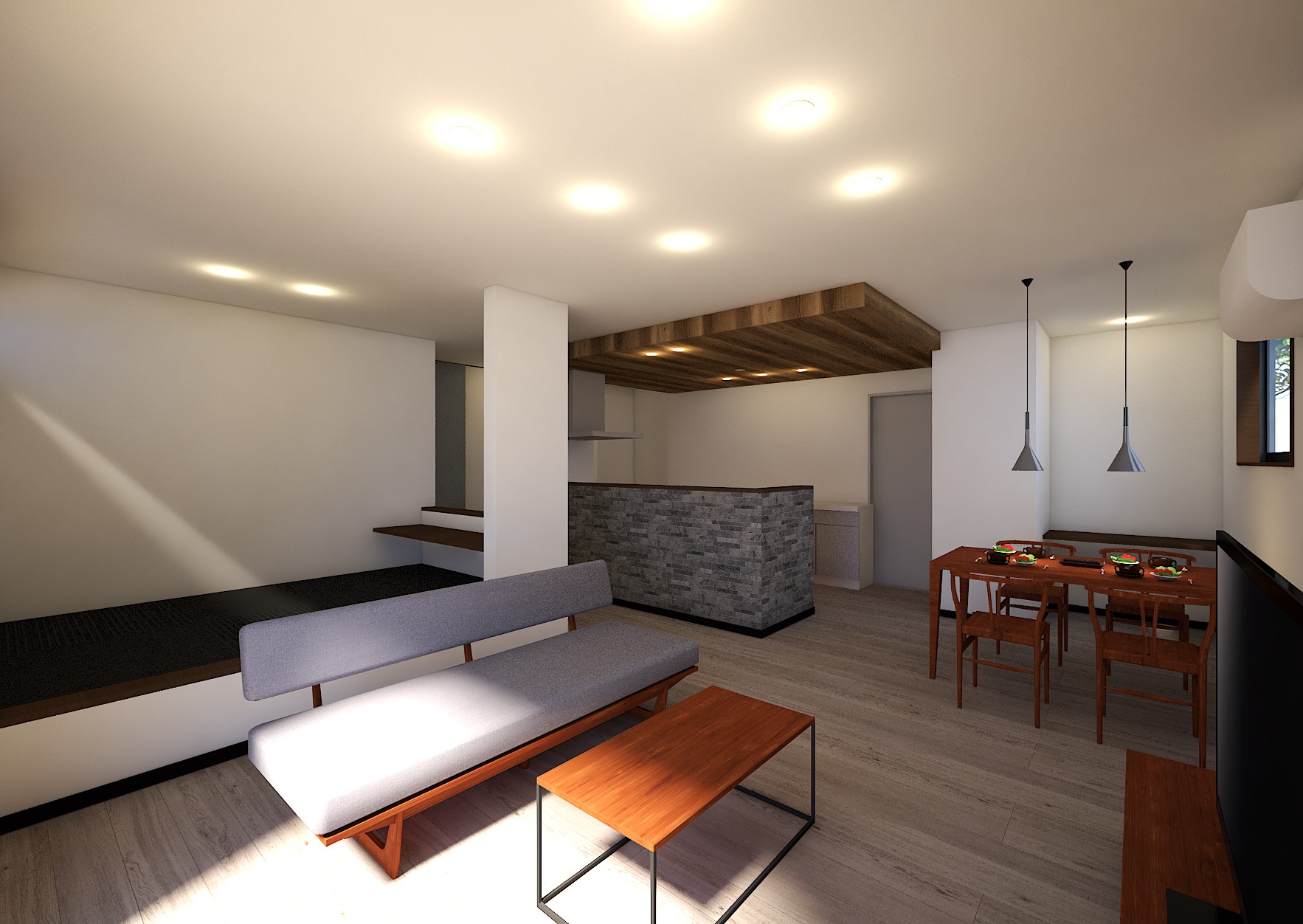 畳コーナーのある約23帖の開放的なリビングのお家。