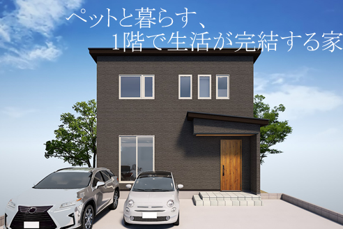 1階に寝室を設け、子供が小さいとき、子供が巣立った時、人生のほとんどの時間を1階で生活が完結し、半平屋生活ができます。