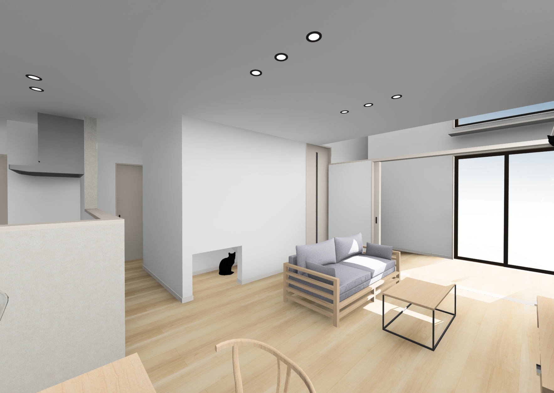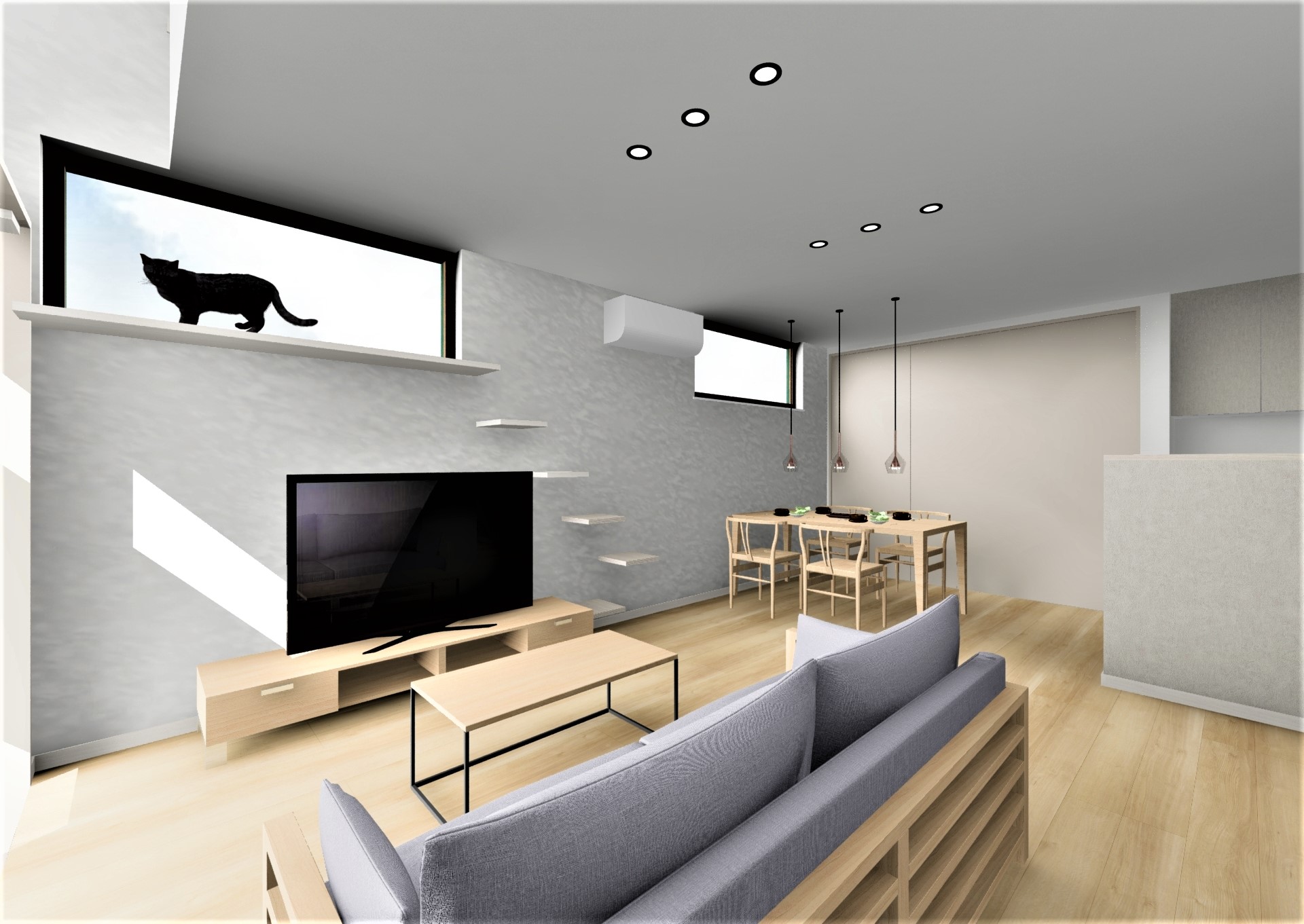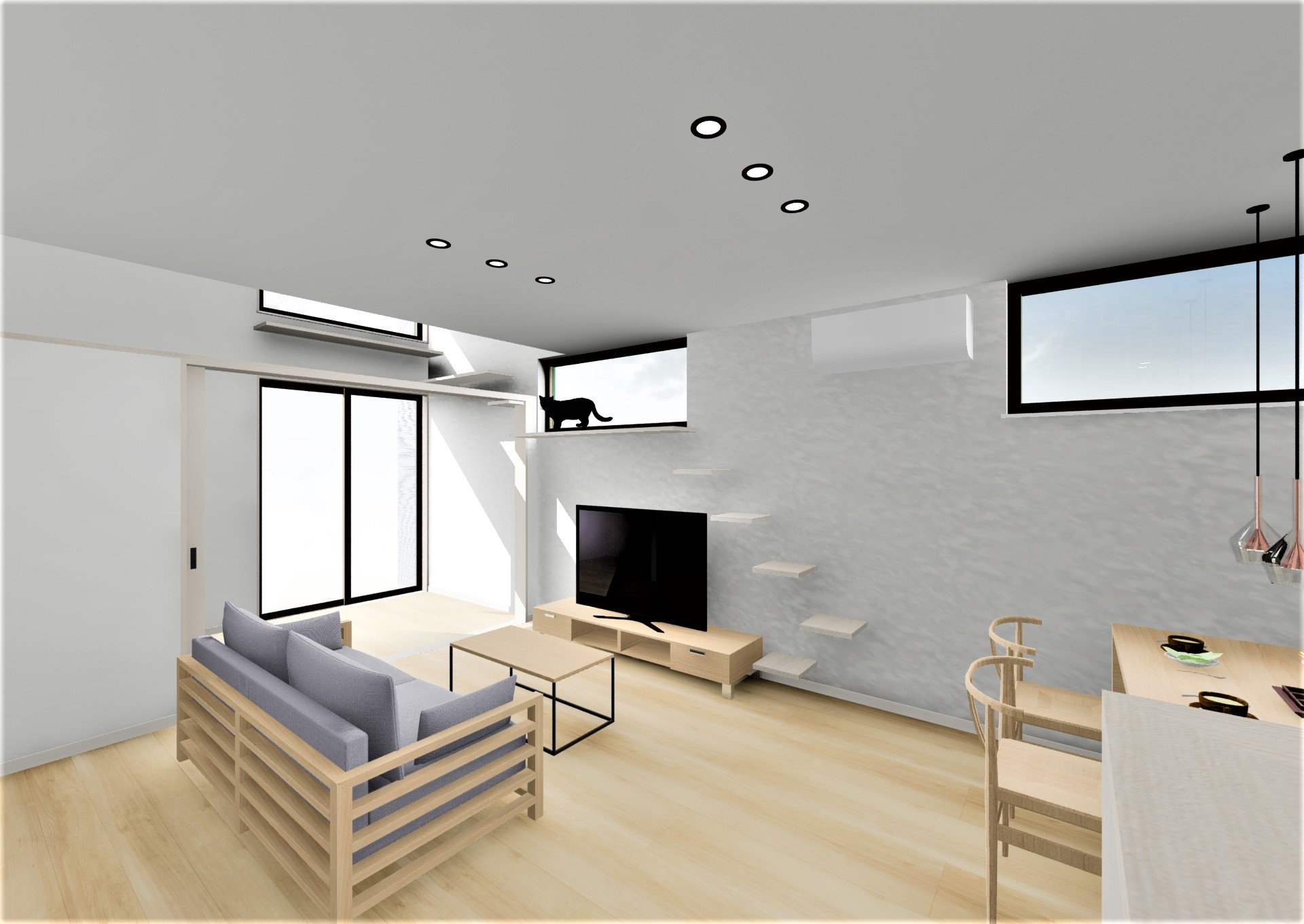 ・キャットステップを設置し、ネコと暮らすためのリビングを作りました。