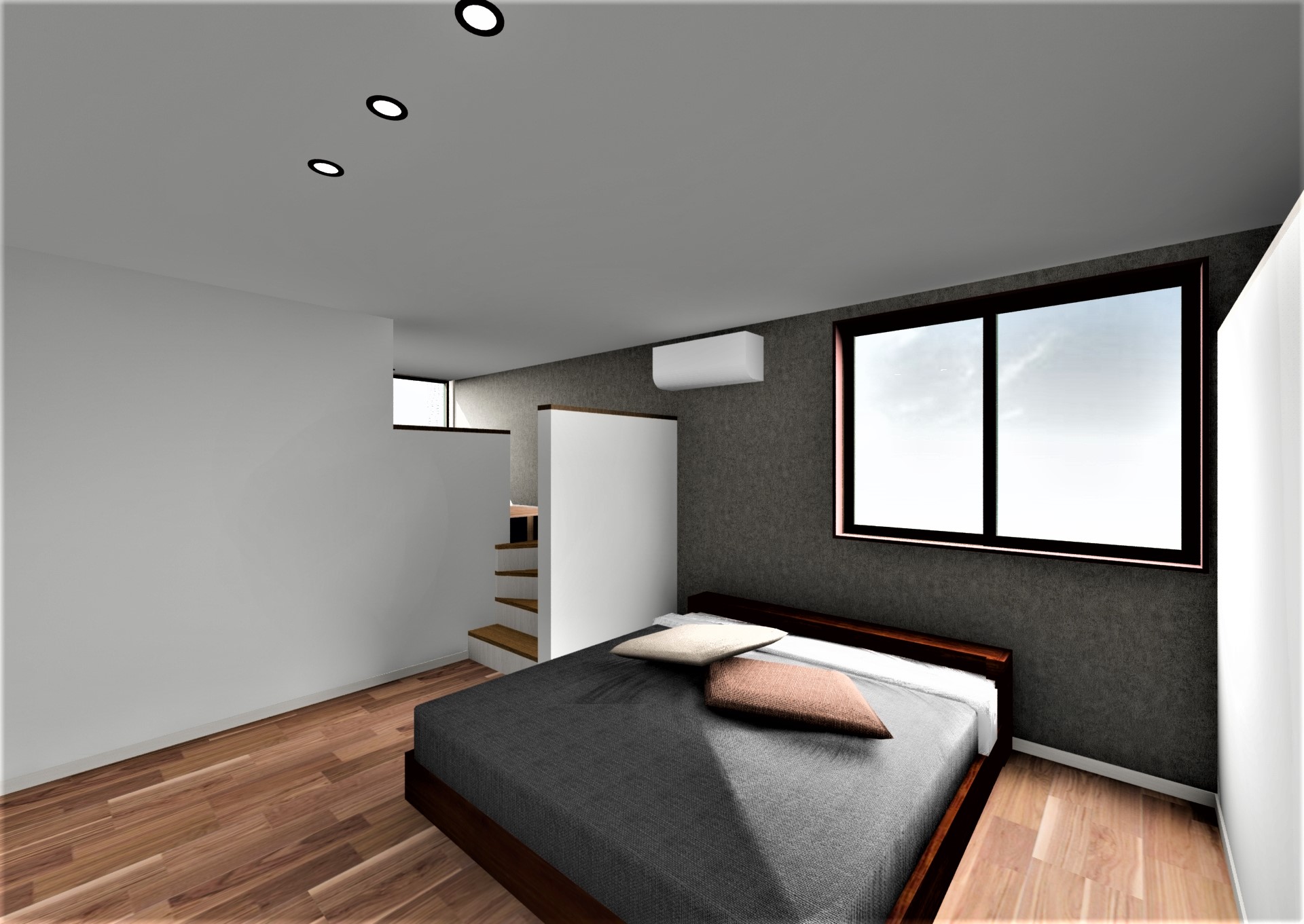 ・寝室にはロフトの書斎空間があり、面白い構成の空間。